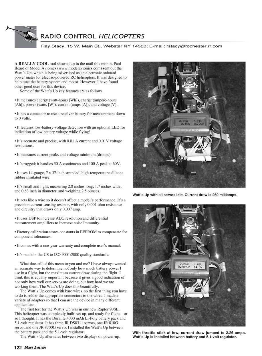 servo, and one JR 8700G servo. I installed the Watt’s Up between