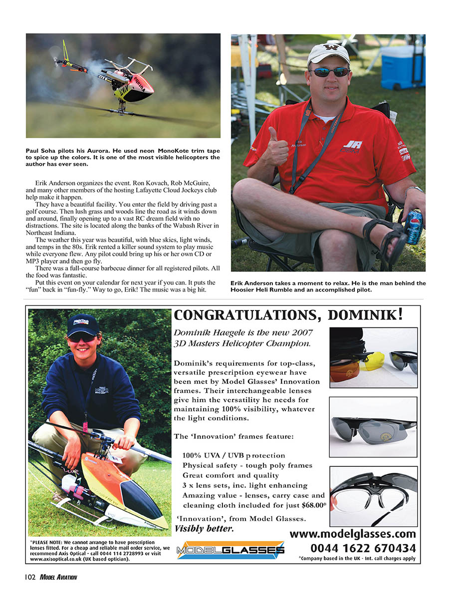 Experiences from, and thoughts about, the Hoosier Heli Rumble