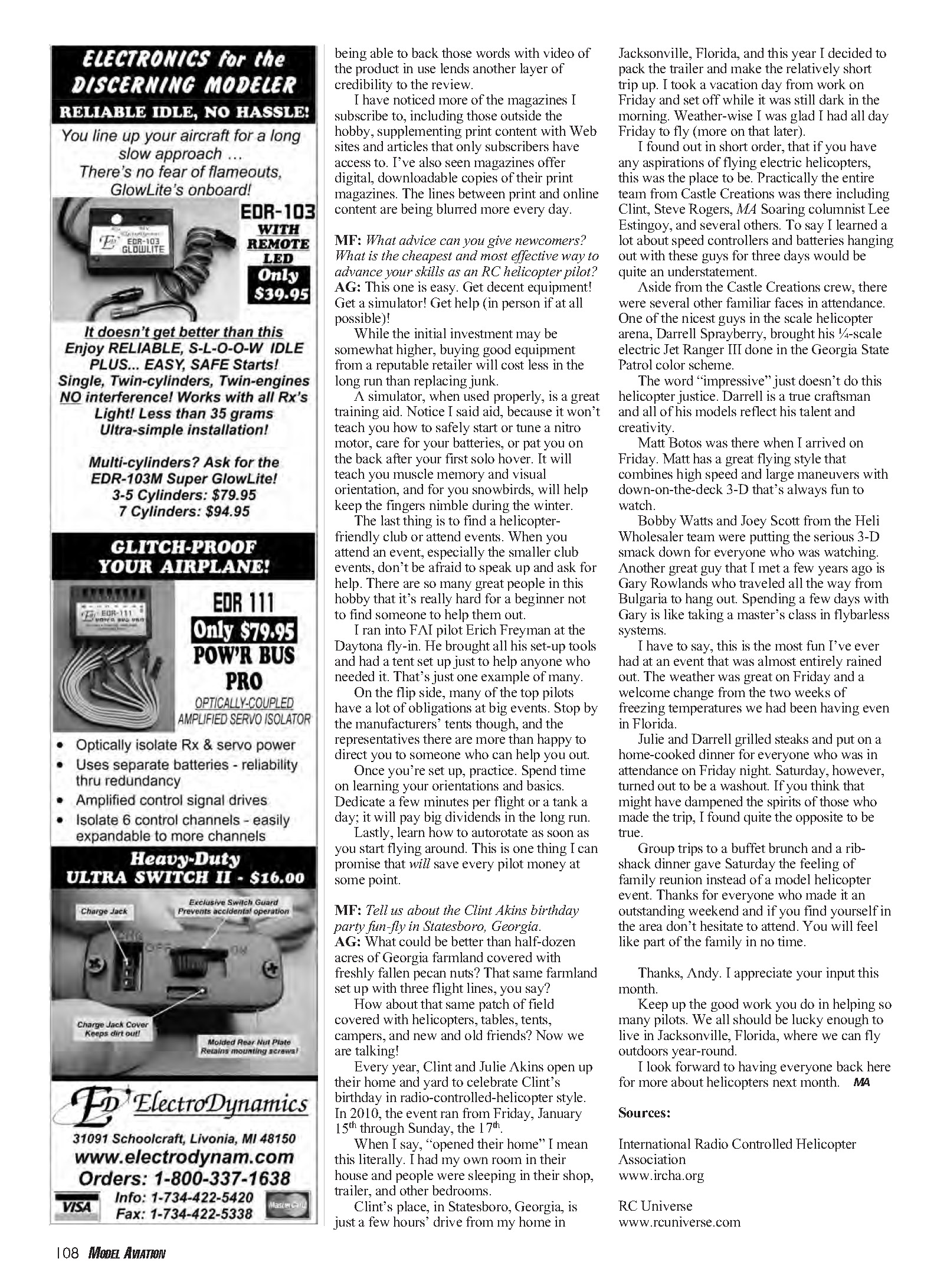 small electrics to a large gas-powered Yak and a 2.6-meter scale glider.