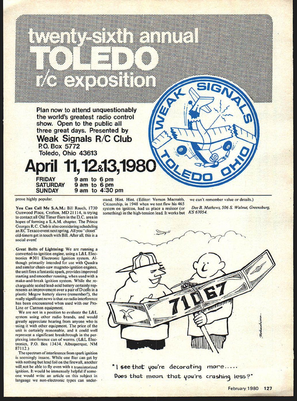 SAM RULES printed AMA rule book require minimum 225 sq area 10 Cu engine displacement effort strike balance between screamers floaters majority pre- 1942 designs must either scaled up down reach required 900 sq use popular 40size engines months feature model exception Riser Rider has slightly over minimum area handles power very well Joe Percy Fort Worth has powered K&B 65 cc create model possessed astounding climb slow lazy glide privilege observing Joes creation South western Regionals Ft Worth am highly impressed glide dead flat sink rate almost negligible model seemingly will stop mid-air hanging like parachute rides lift very well showing little tendency tighten up fall out thermal Joe developed alternate sheet ribs rather sliced ones Both shown drawings Although structure appears dif ficult construct Joe assures us curved spars symmetrical stabilizer section unusual highly effective according Joe currently completing 1350 sq enlargement 60 power should something else Interestingly Joe Percy represents typical convert RC Assist has building freeflight over 35 years yet caught RC bug recently Joe won Novice Old Timer first Ive seen event whale good idea certainly speaks volumes about ease flying inherent designs Joe came aspect hobby physical limita tions reduced thrill retrieving agony de feet As said else can ride thermal long want chasing next county Editors Note Doc asks us fill Marquardts background pleasure have met Roy probably Detroit pre-war Nats flew three Riser Riders Roy modelers made good big way aircraft industry having number-one company fieldramjets During 1950s emphasis defense missiles ramiets big sure whether Roy sold Out retired perhaps well hear him some friends Oshkosh Gosh annual pilgrimage Oshkosh once again pointed Out remarkable kinship between AMA members EAA designers builders homebuilts 9 ROY MARQUADTS _RISER RIDER DEVELOPED BY JOE PERCY FOR RC -SPAN 75 LENGTH 510 AREA 400 SO IN FSAM LEGAL FOR 65cc 4Oiri3 O 2 4 6 8 0 have roots model aviation example Pete Bowers has several model designs mags As matter fact original Fly Baby free-flight published MAN 1942 Editors Note David Haughts CL Fly Baby very niceappeared May 78 MA Little wonder Fly Baby homebuilt resembles giant model airplane Frequently home-build ers restorers delighted learn visiting fellow modelers display line extremely cooperative providing assis tance interested developing scale models aircraft wide commonality materials techniques always evident construction EAA AMA aircraft years demonstrations new hot-wire foam-cutting techniques drew z C C z C -j w w large crowds war replicas Rands Variez Quicky other designs constructed poly-urethane foam epoxied onto wooden frames covered Dynel Hobbypoxy EZ Doesit cloth finished micro-balloons resin Ultra-fright term powered hanggliders covered same acetate dress liner use old timers American Eaglet powered glider utilizes 3-in Du-Bro wheels music wire wing tip out-riggers have never attended fly-in BAA grounds buildings immaculate crowds immense evening air show superior displays commercial homebuilt tique classic warbird aircraft absolutely mind boggling Much continued success Continued page 126 Although played no spectacular part free flight stage prior WW II Roy Marquardts Riser Rider excellent airplane Marquardt went found number ramiet production facility nation during 1950s Picture shows Joe Percy Riser Rider Powered K&B 65 cc its fine climb glide impressed Doc Southwestern Regionals Fort Worth February 1980 33 62 Sport Scale 3-4 channels 1911 AVRO D Worlds First Tractor Biplane Kit includes wing-warping cable-operated elevator rudder winy-building jig quick assembly wing panels pilot passenger heads written instroctions 15 x 20 decal sheet Pre-printed sheet metal parts Rigging fittings PLANS 135 x 50 designed poster displaying lull size profile perspective assembly drawings portrait brief history AV Roe IY Second sheet full size working plan detail construction drawings George Marsden 7621 Mary Cassaft Drive AEOBATIC AiRPLANES BY ROBT C MORRISON 19 SUPERB DRAWINGS 8395 us SOW POSTAC LOG S $100 appropriate side rudder Vary length get less tab effect thick built-up rudder section makes model fairly insensitive rudder tab adjustments makes easy fine-tune pattern liking trim method use similar used FM Power models obtain righf/right pattern complication auto-surfaces Thrust adjustments effective low speeds first few seconds after launch wing wash-in gives left roll tendency during right climb Rudder tab used correct later stages power pattern Youll probably end up slight amount left thrust plus some right rudder tab warps correct power pattern want get should straight climb about three seconds gradually changing right climb making about complete turn nine seconds model goes round round making too turns take out incidence straighten out speed up climb model climbs too straight up tends go left end power pattern add right tab stalls doesnt recover quickly engine cuts add incidence power pattern set check glide again Add weight rear fuselage until model stalls slightly glide remove bit youve achieved desired power pattern dont tilt stab change glide circle since will affect incident setting maybe mess up carefully-trimmed power pattern Instead add shims wing rails tilt wing glide circle should give about complete circle 40 seconds calm weather Tighten about 30 seconds wind comes up KIT $9400 PLANS $3000 Potomac Maryland 20854 GET ORGANIZED l-lee s set 0t4 stady Nes holds Doe 4 years tao8e 8 agaza1ea 4 MAG FILES $495 Send 5496 p1w SI 00 postage handeig DOU INOUSTRES PO BOX 386-K DOVER NH 08620 KITSO PLANS SACCESSORIES BABY ACE , P-Nur set N 8EAEtNGS ROWN CO-S ENGINES L JAPANESE tISSUE-PROPS 17 SPAN COMPLETE CATALOG $1001 KIT S449 MANY HARD SO FIND ItEMS Peek-hjaes BOX 2493-AMLA MESA CALIF 92041 CL Scale/Gretz continued page 54 quality lumber obtained can vary enor mously Densities can vary four pounds 20 pounds per cubic foot Eight- 12-pound baisa cons
