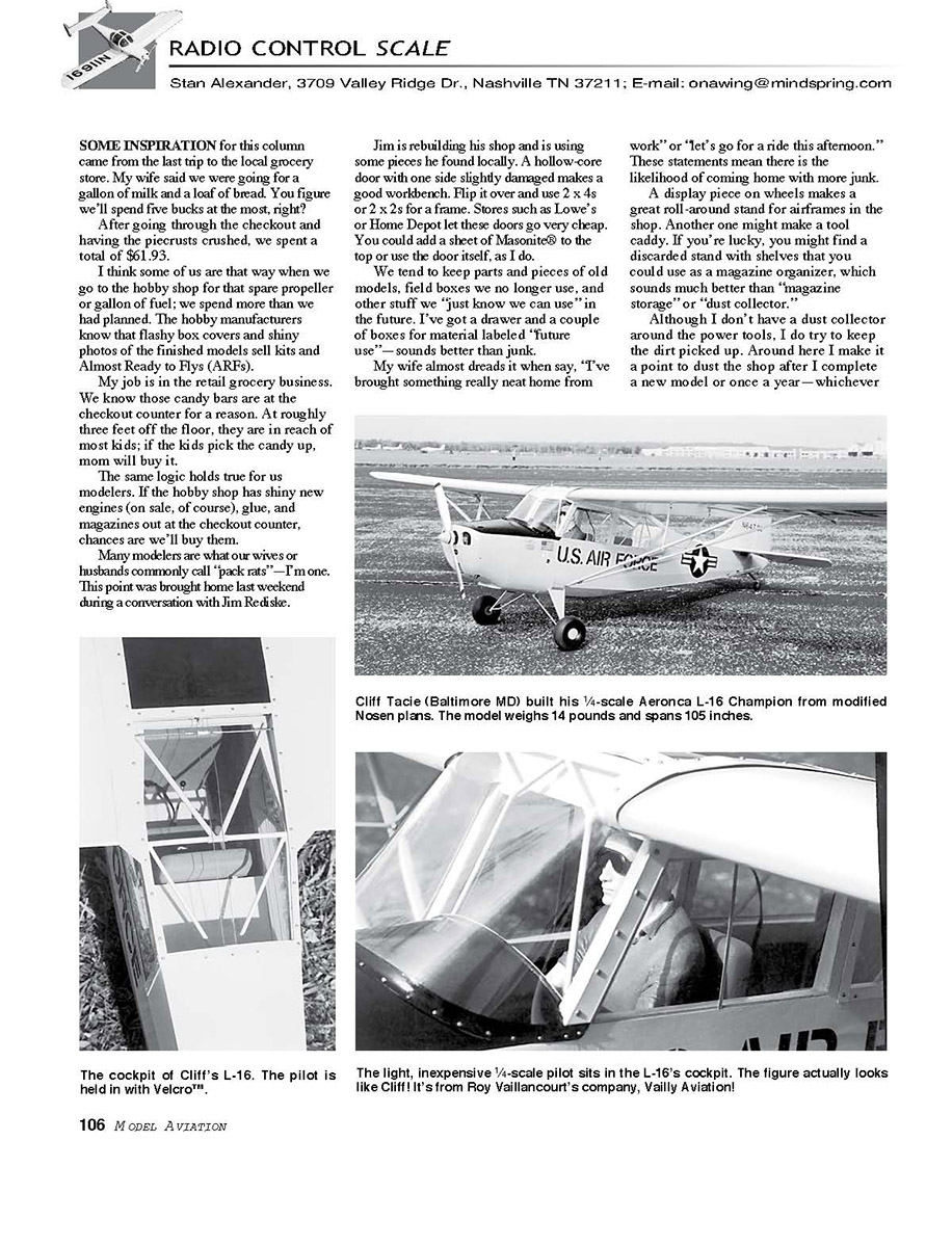 Cliff Tacie (Baltimore MD) built his 1⁄4-scale Aeronca L-16 Champion from modified