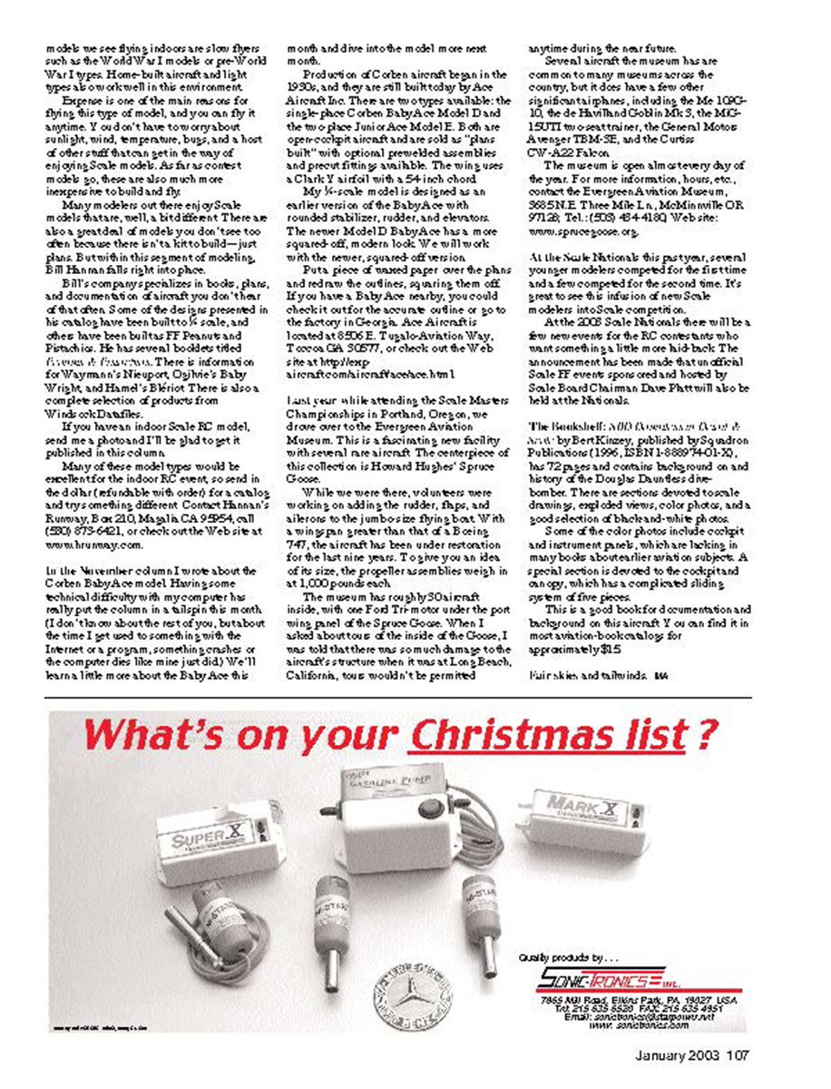 competition. Dad had the shakes just a little that day! Mike Gretz’s Demoiselle during indoor RC Scale at the Nationals.