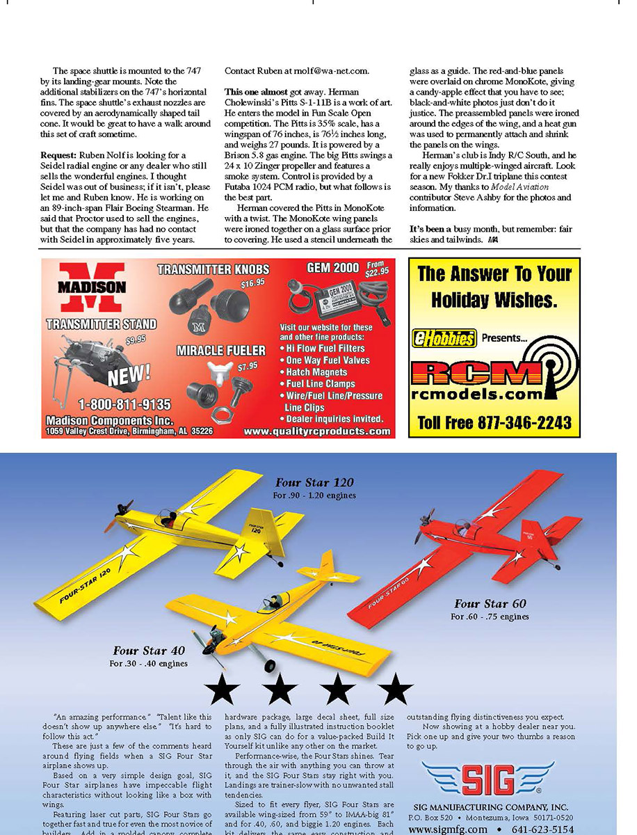 season. My thanks to Model Aviation