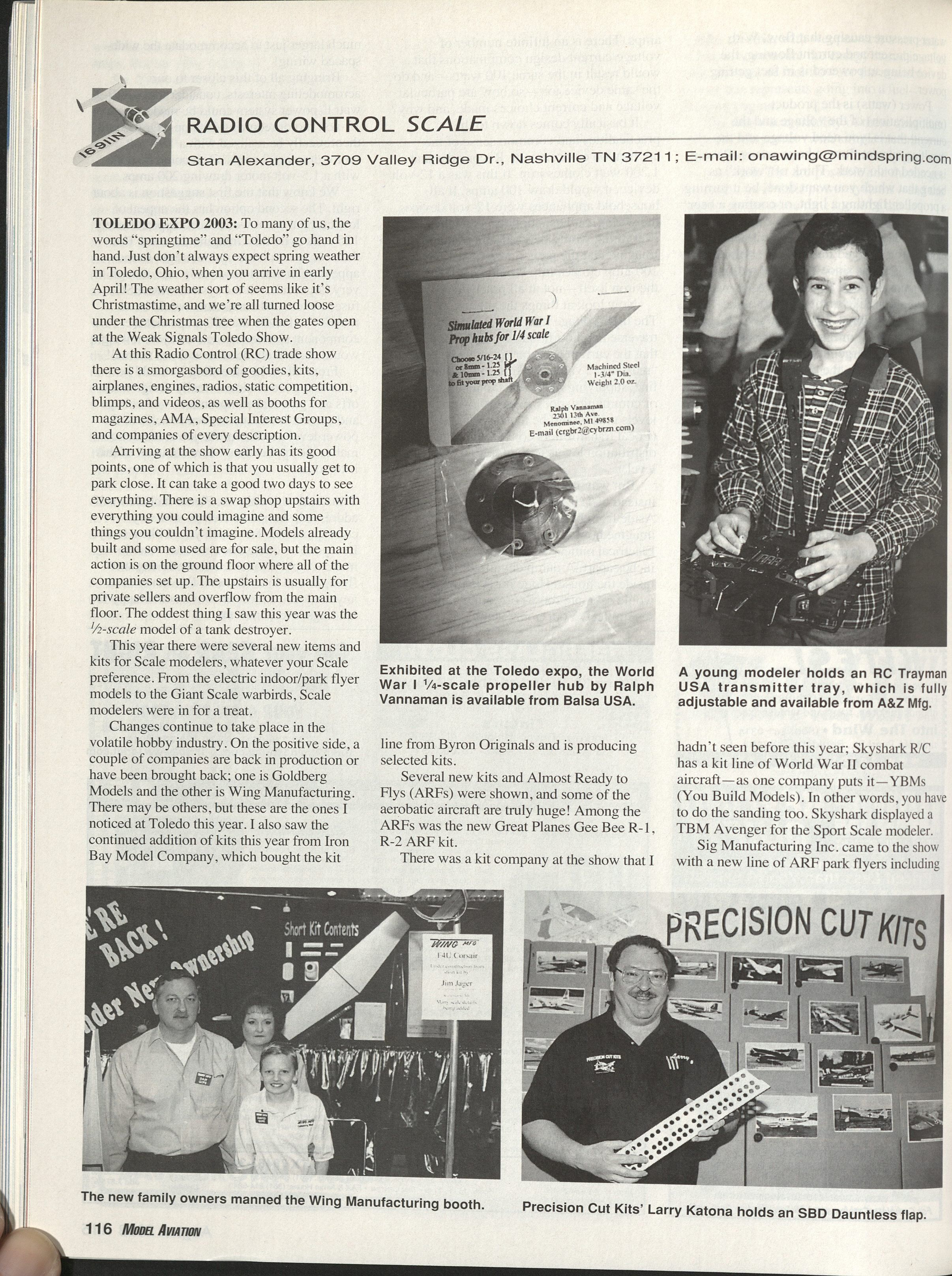 with 1⁄4- and 1⁄5-scale kits. Larry Katona has a