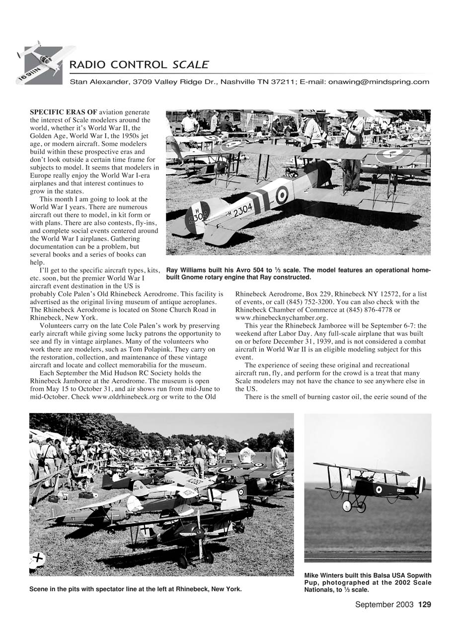 Ray Williams built his Avro 504 to 1⁄3 scale. The model features an operational homebuilt