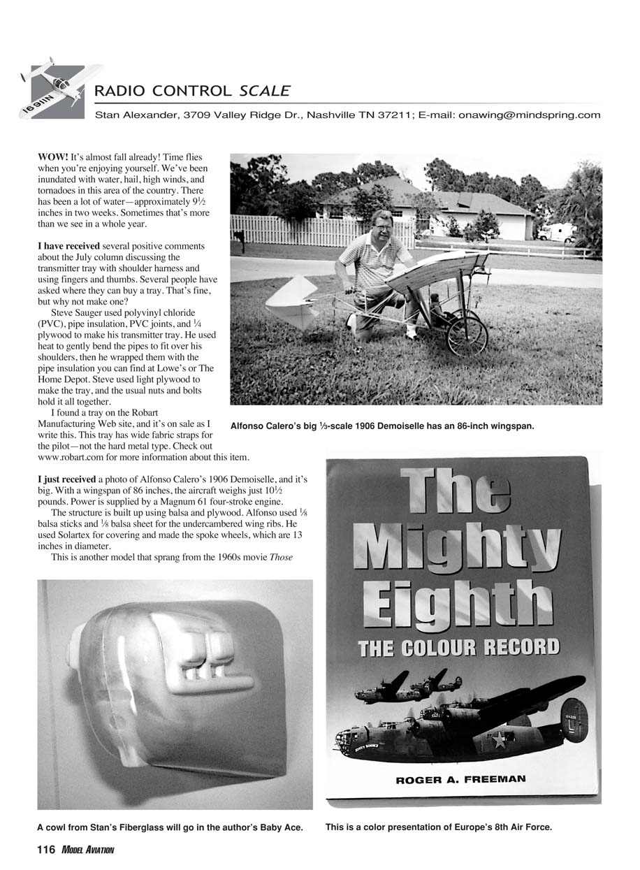 A cowl from Stan’s Fiberglass will go in the author’s Baby Ace. This is a color presentation of Europe’s 8th Air Force.