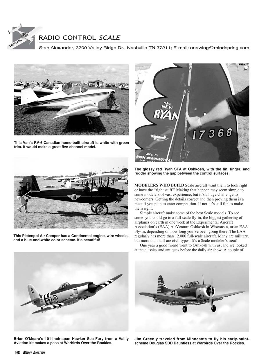 MODELERS WHO BUILD Scale aircraft want them to look right,