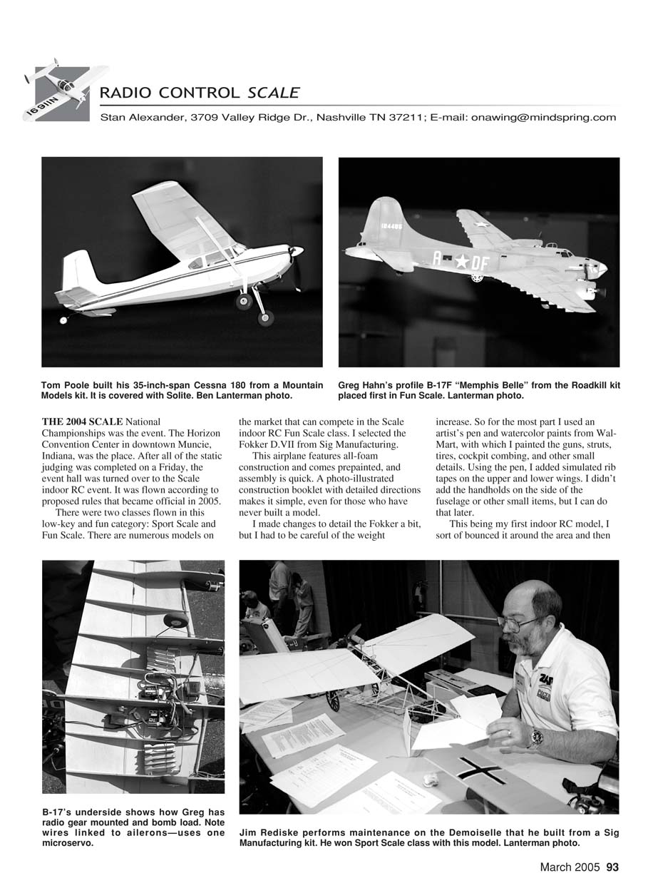 Stan Alexander, 3709 Valley Ridge Dr., Nashville TN 37211; E-mail: onawing@mindspring.com