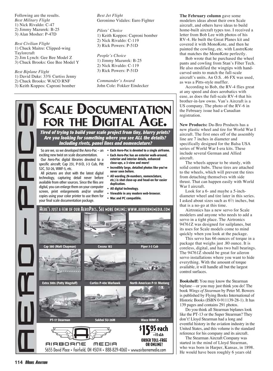 Scale fly-ins and most Scale contests around the world. Making