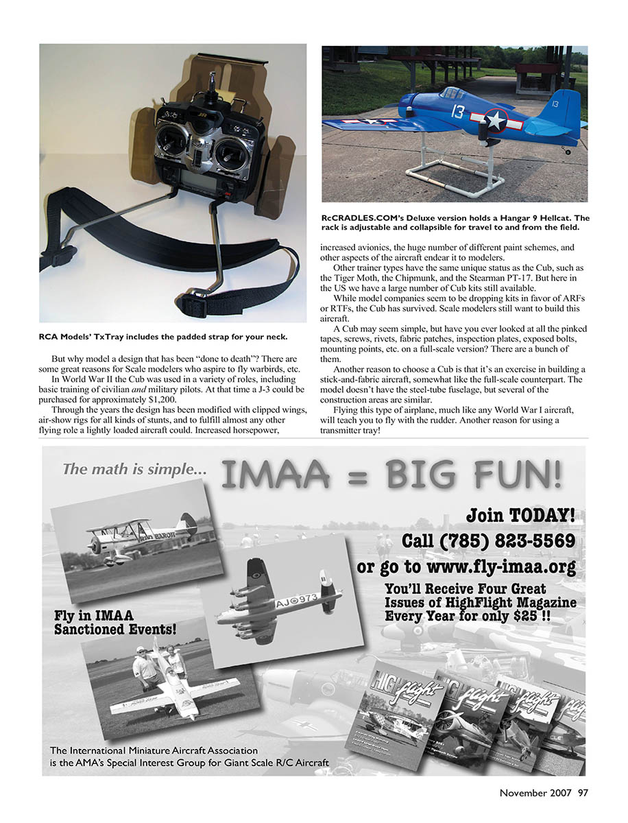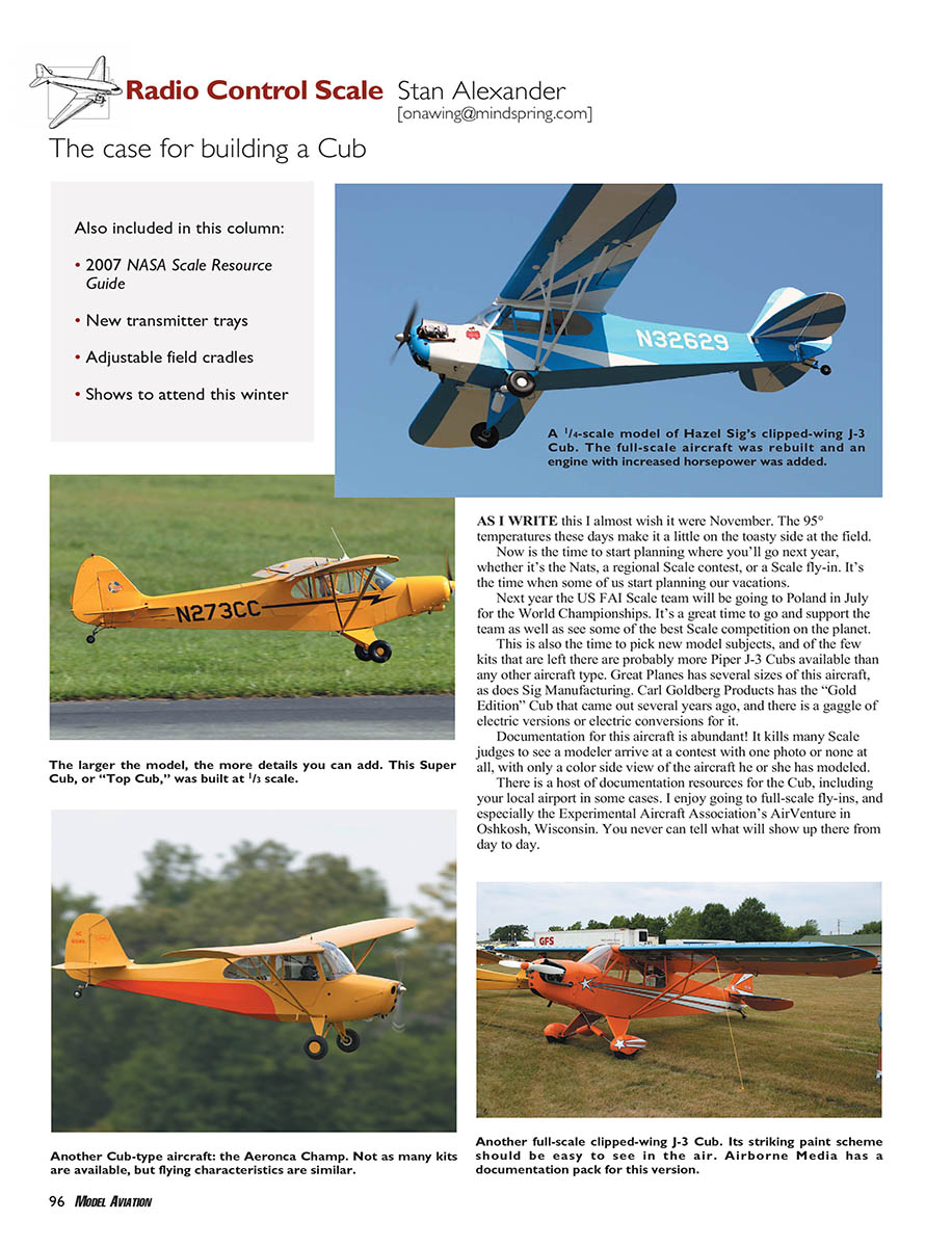 or RTFs, the Cub has survived. Scale modelers still want to build this