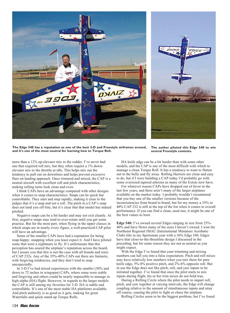 The Edge 540 has a reputation as one of the best 3-D and Freestyle airframes around,