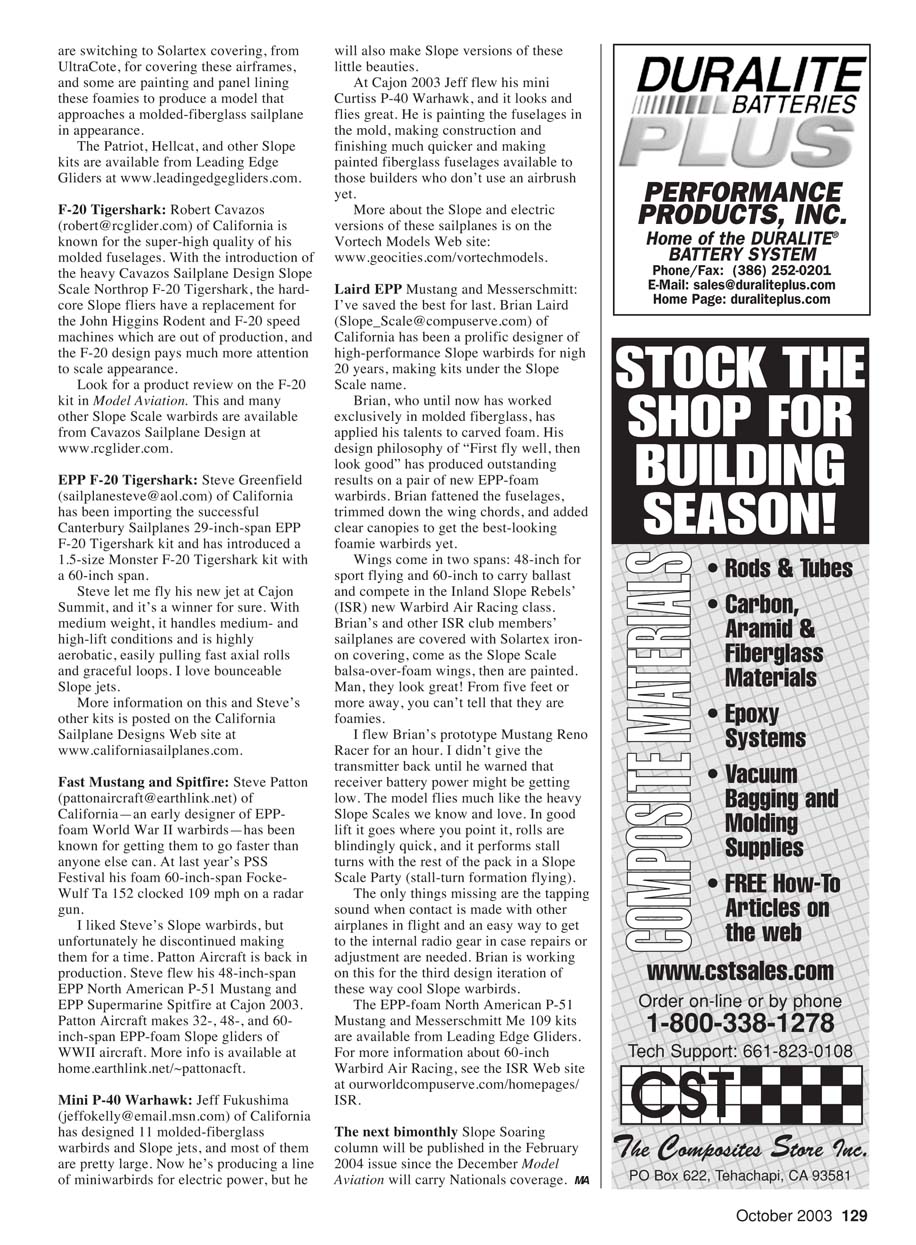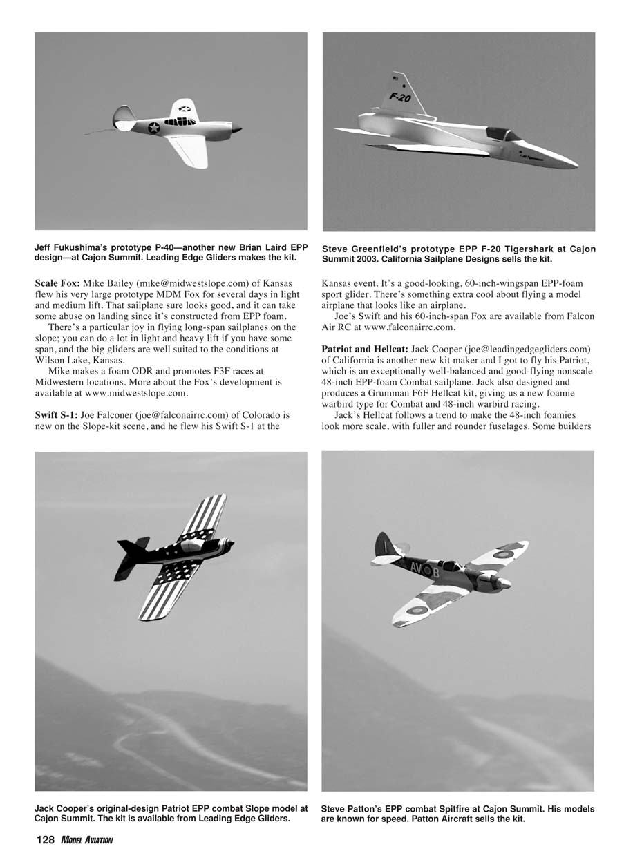 Joe’s Swift and his 60-inch-span Fox are available from Falcon