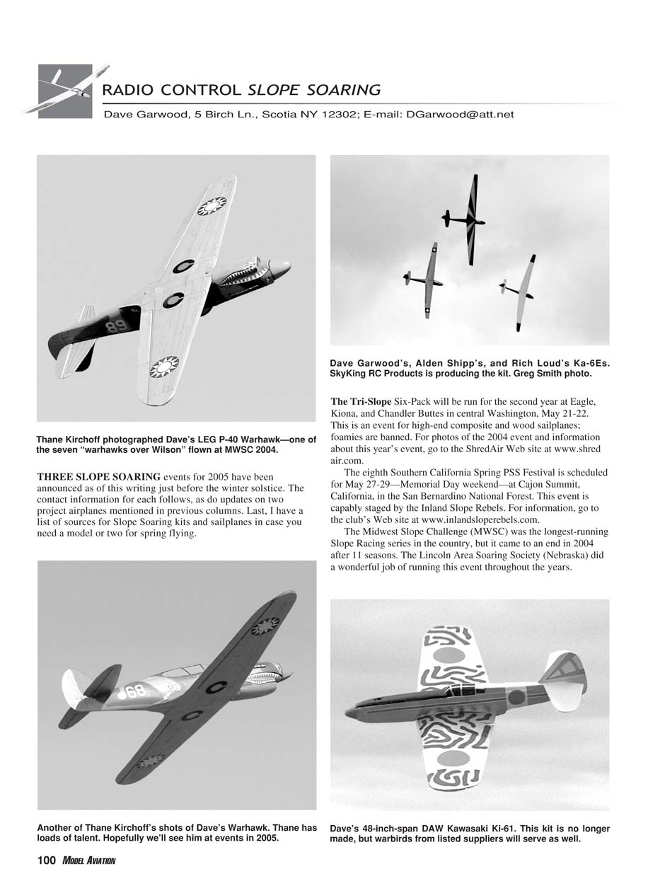 THREE SLOPE SOARING events for 2005 have been