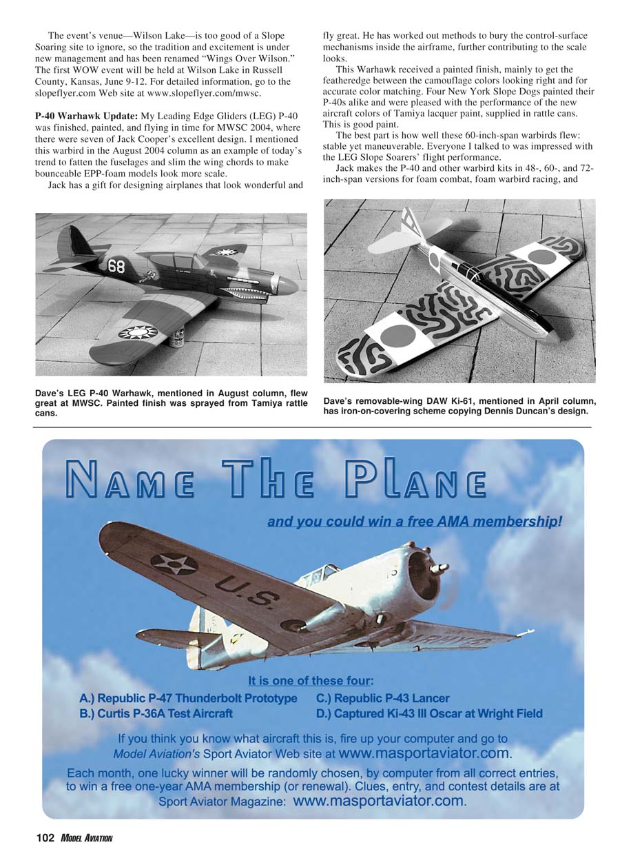 Dave’s LEG P-40 Warhawk, mentioned in August column, flew