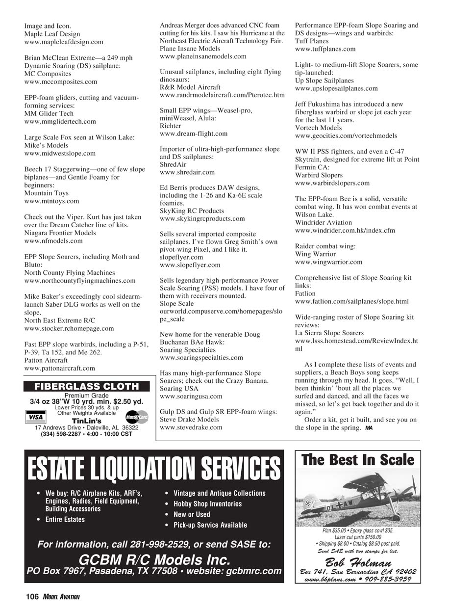 list of sources for Slope Soaring kits and sailplanes in case you