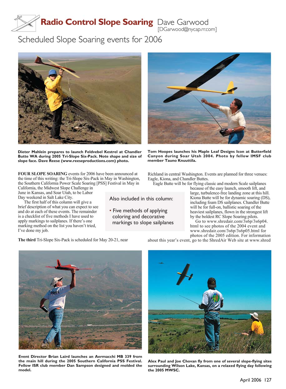 FOUR SLOPE SOARING events for 2006 have been announced at