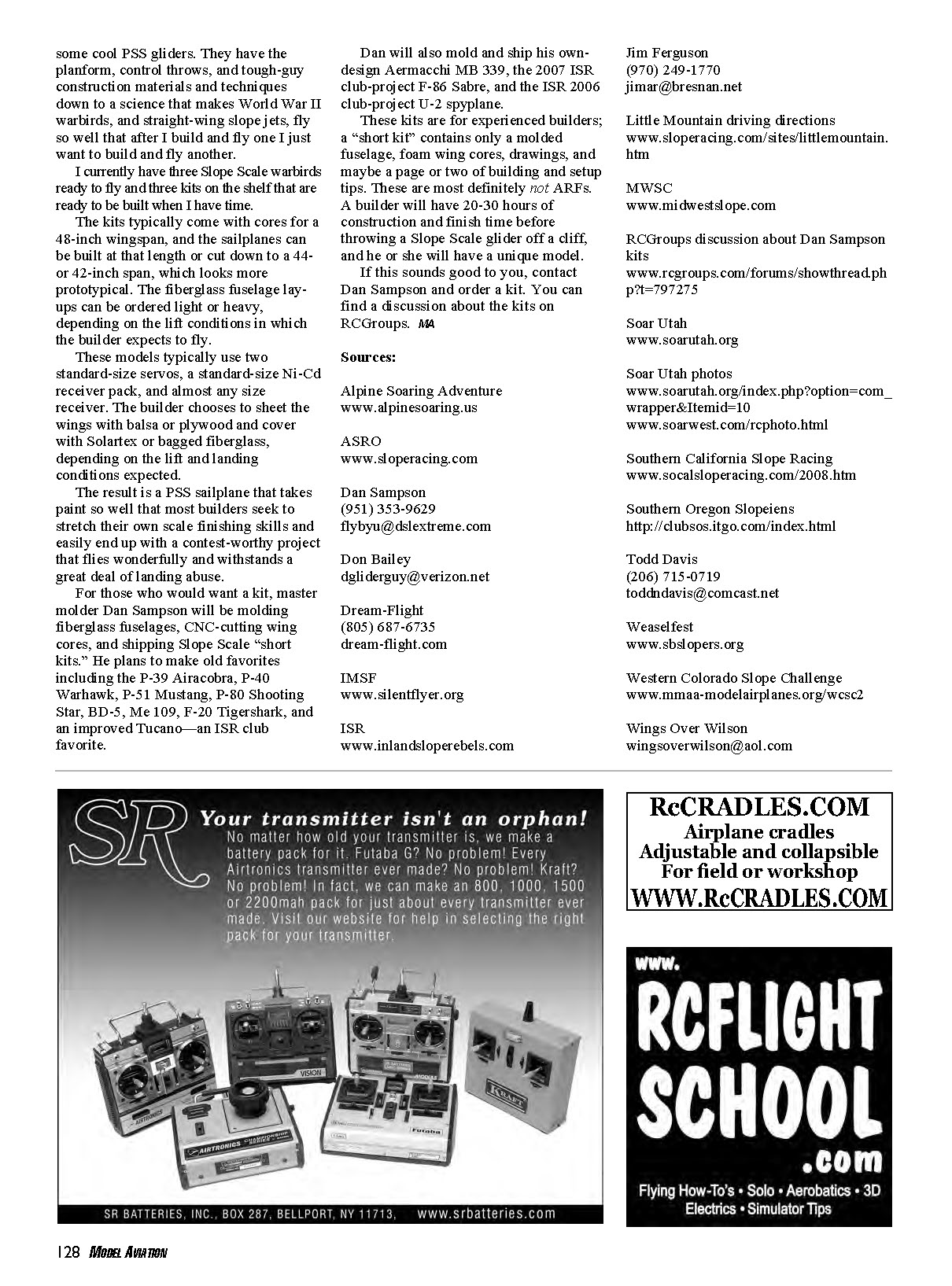 Sampson, who will produce Slope Scale PSS sailplanes.