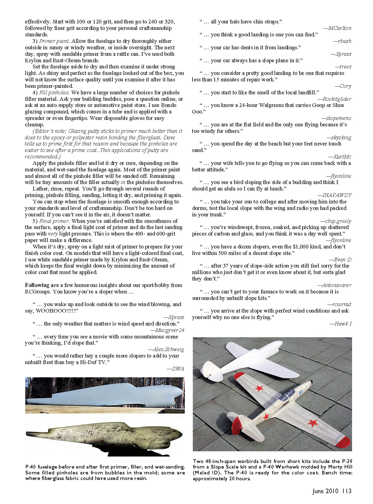 from a Slope Scale kit and a P-40 Warhawk molded by Marty Hill