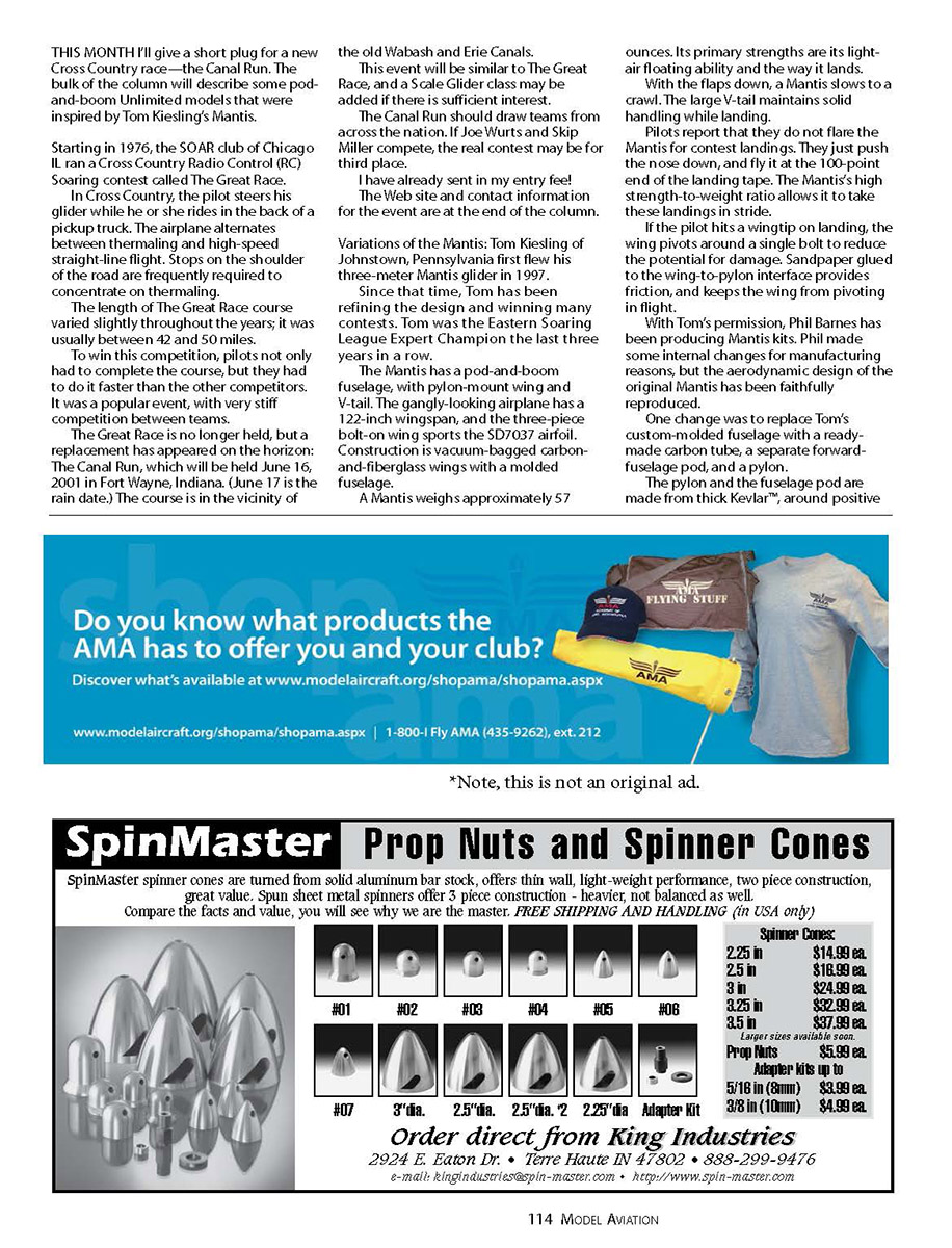 Tom Kiesling’s 3.4-meter Super Mantis (or “Superman”) glider looks similar to his