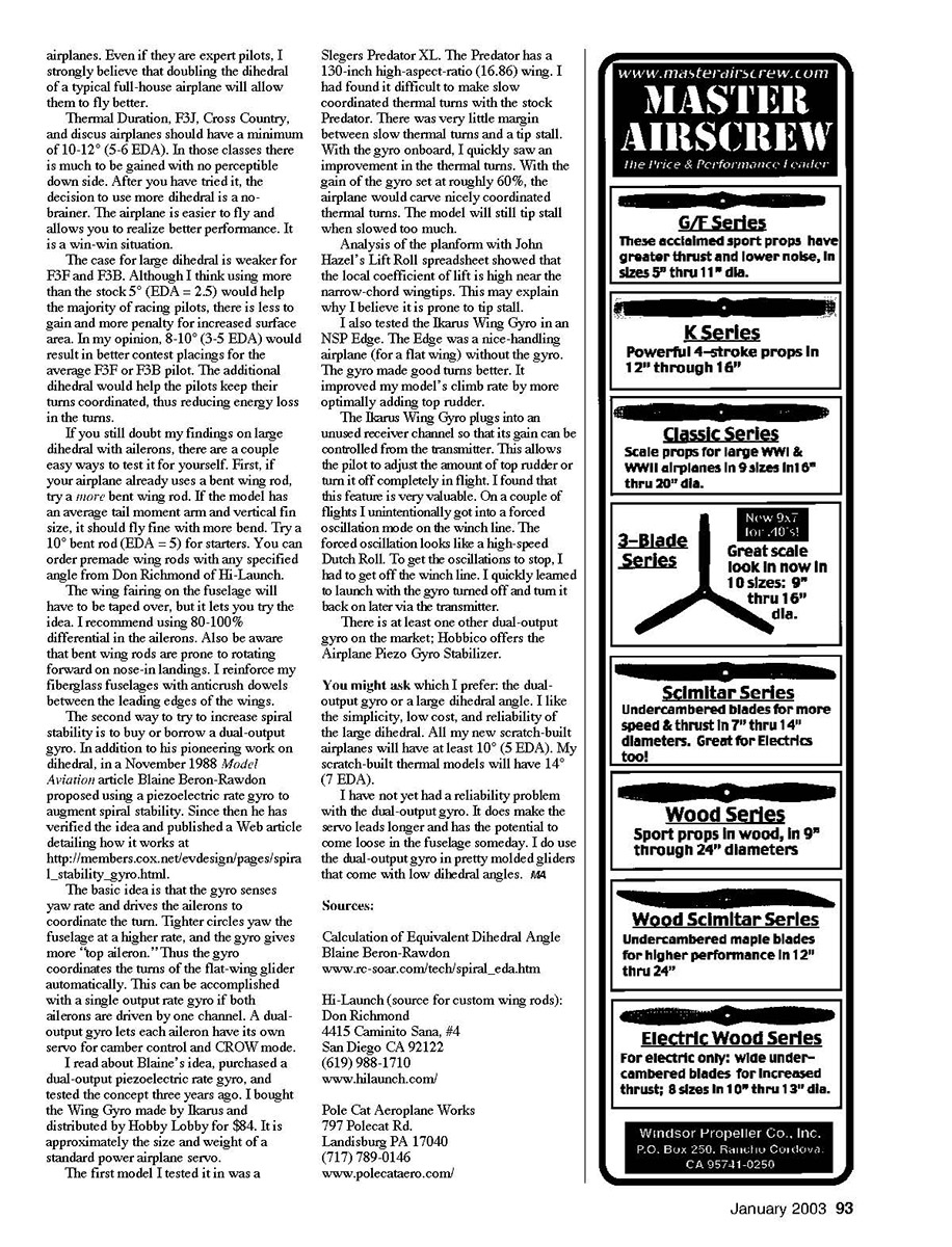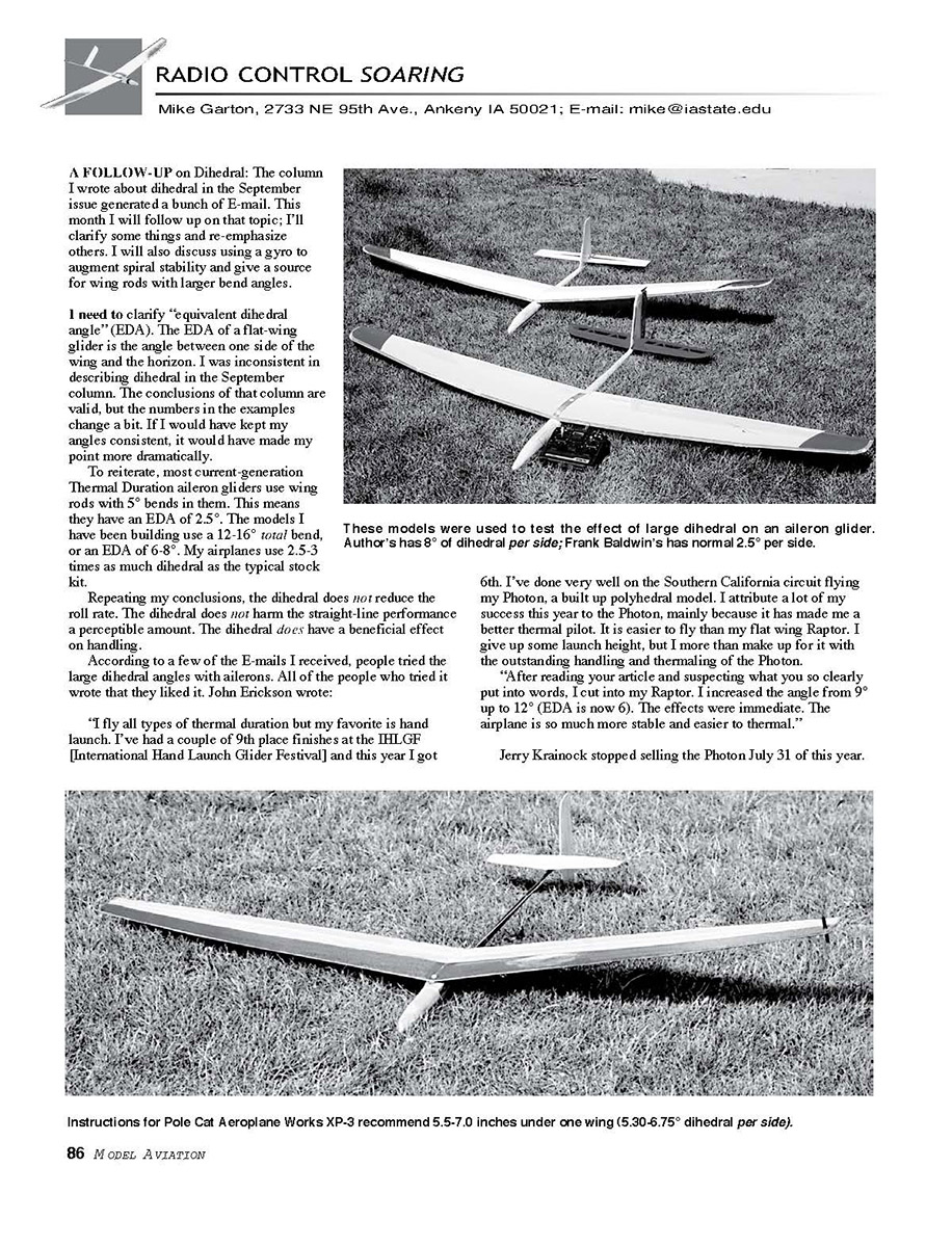 stability to low-dihedral aileron gliders. Text has details.