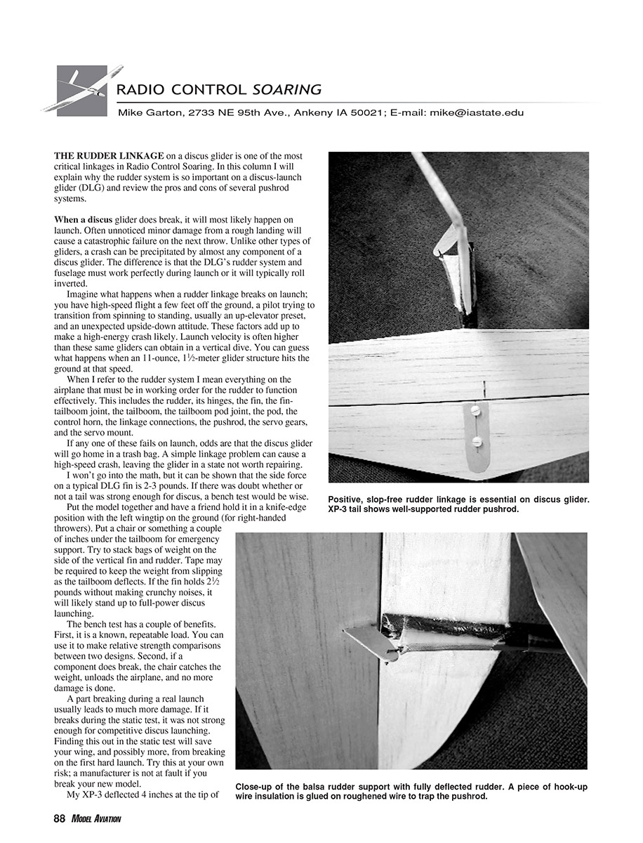 THE RUDDER LINKAGE on a discus glider is one of the most