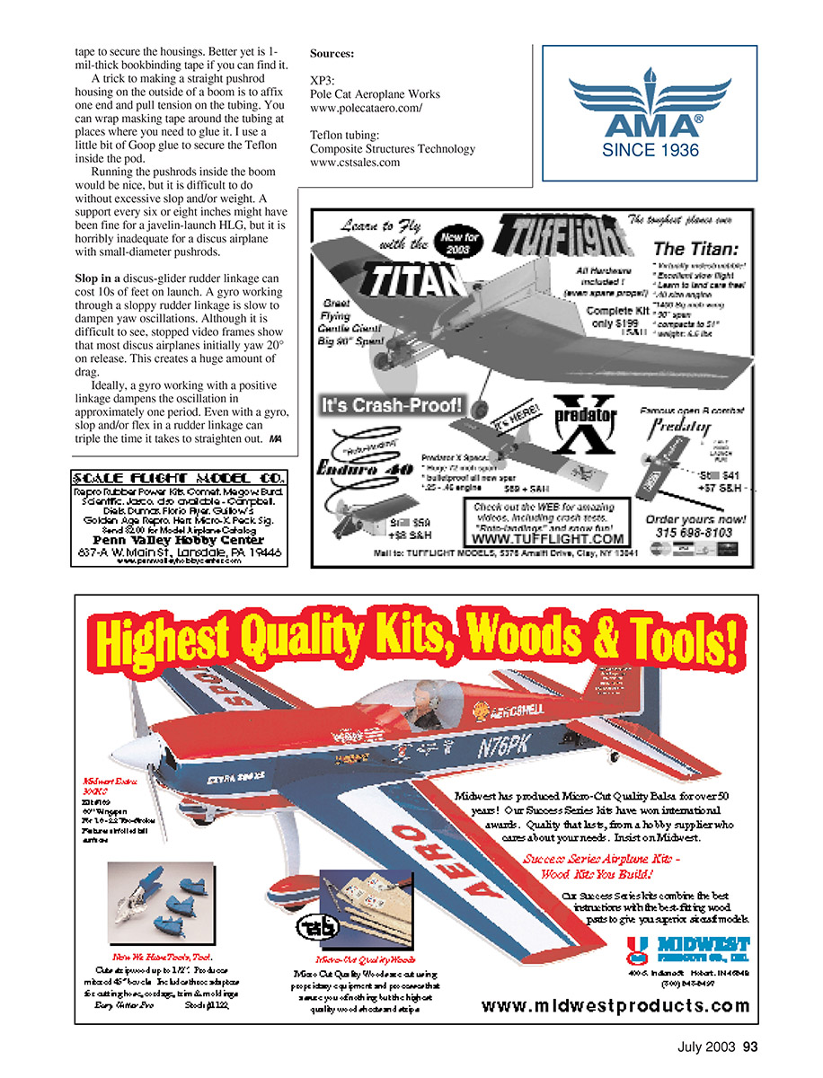surfaces glued to a boom. Discus airplanes need a decent-sized piece