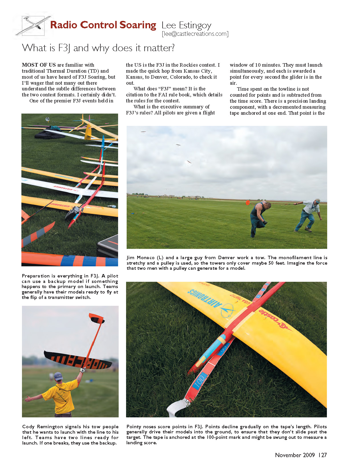 Pointy noses score points in F3J. Points decline gradually on the tape’s length. Pilots