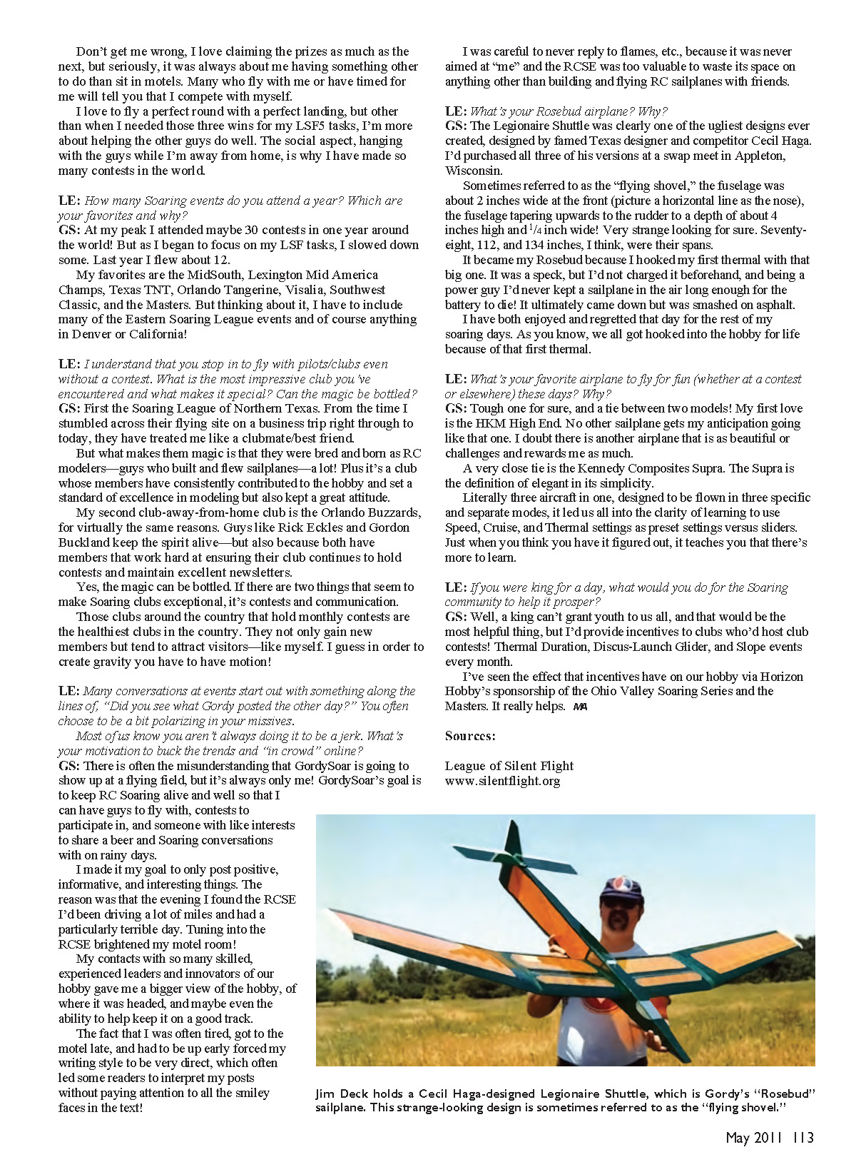 RC Soaring Exchange (RCSE) and his column in RC Soaring
