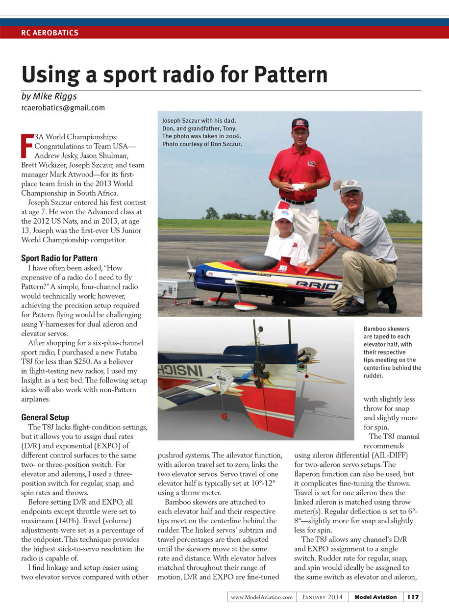 After shopping for a six-plus-channel sport radio, I purchased a new Futaba T8J for less than $250. As a believer in flight-testing new radios, I used my Insight as a test bed. The following setup ideas will also work with non-Pattern airplanes.