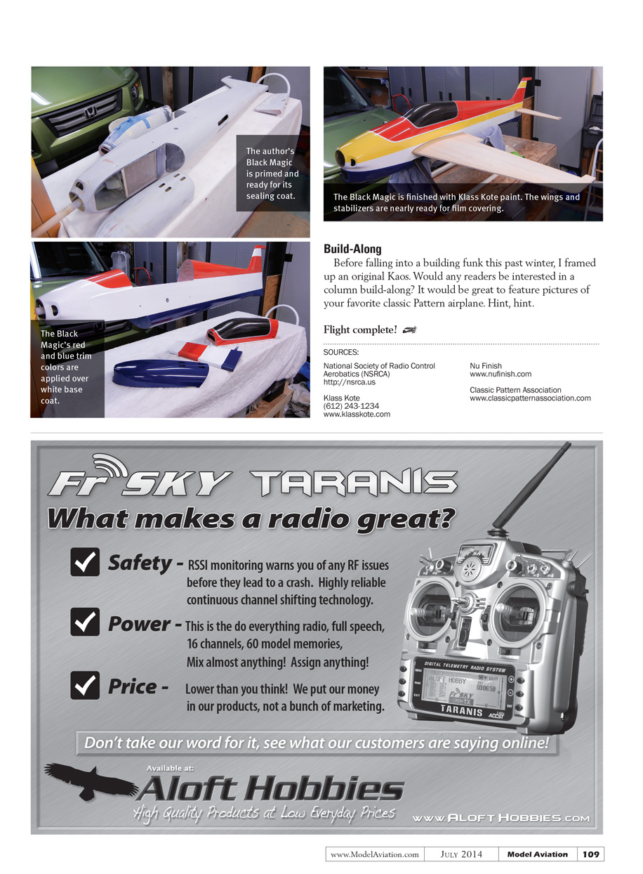 Before falling into a building funk this past winter, I framed up an original Kaos. Would any readers be interested in a column build-along? It would be great to feature pictures of your favorite classic Pattern airplane. Hint, hint.