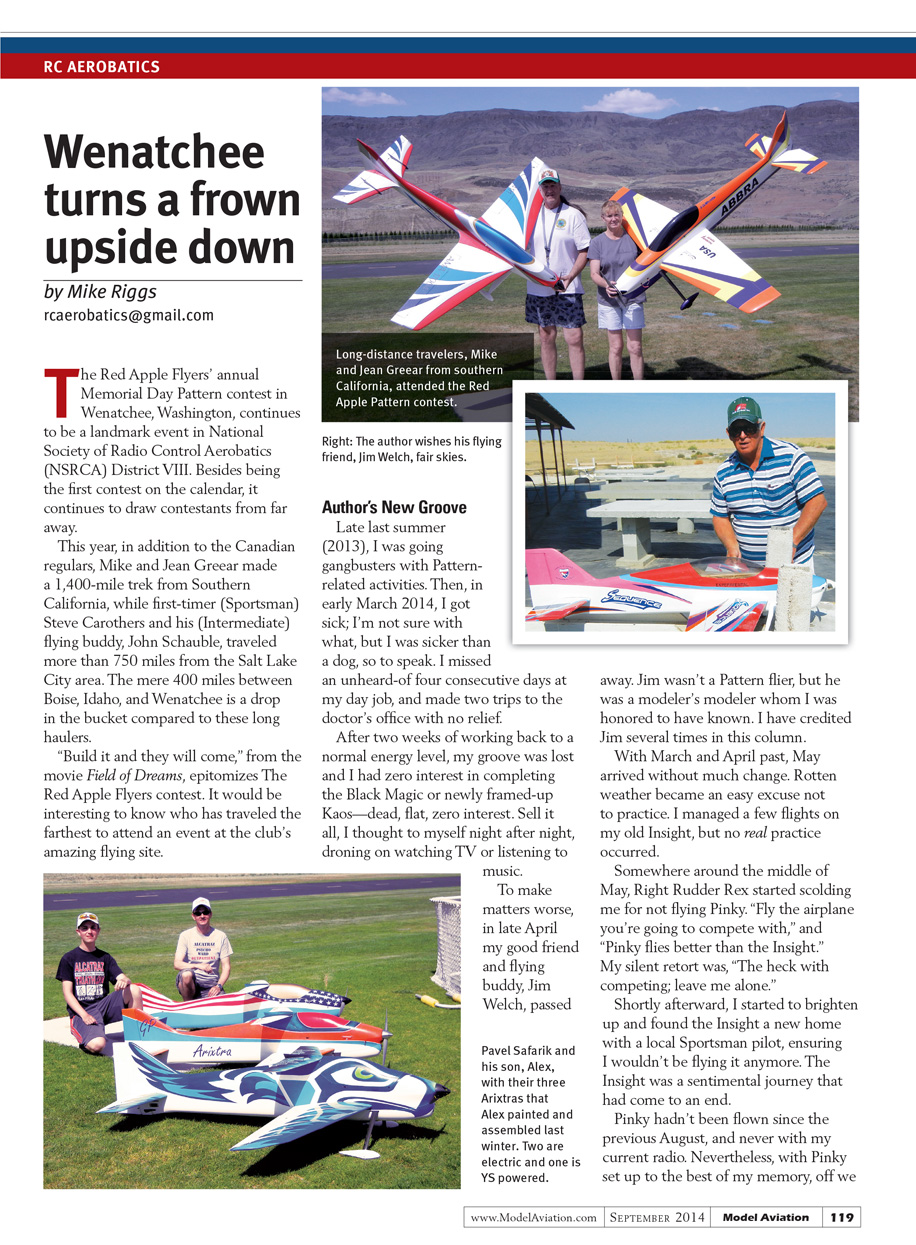To make matters worse, in late April my good friend and flying buddy, Jim Welch, passed away. Jim was never a Pattern flier, but he was a modeler’s modeler whom I was honored to have known. I credited Jim several times in this column.