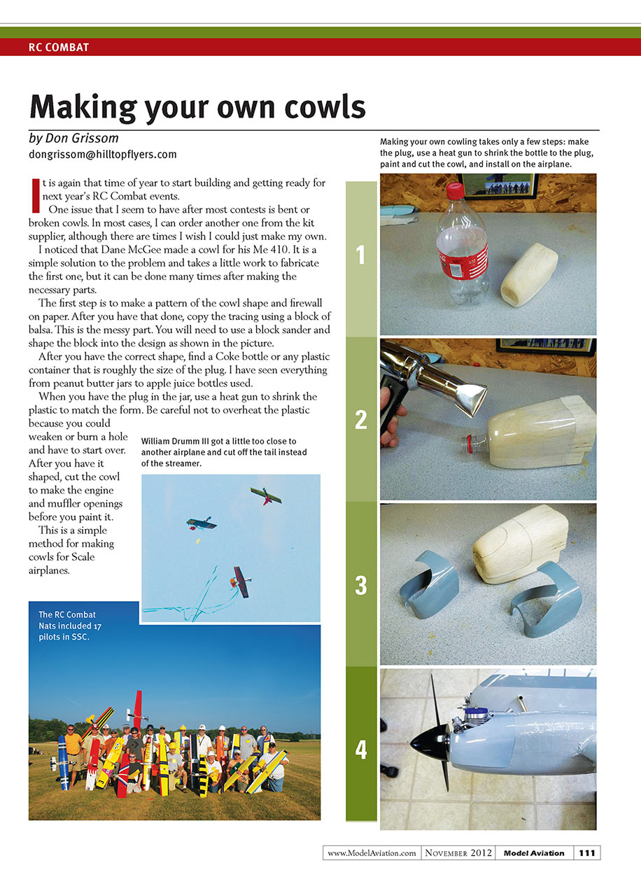 One issue that I seem to have after most contests is bent or broken cowls. In most cases, I can order another one from the kit supplier, although there are times I wish I could just make my own.