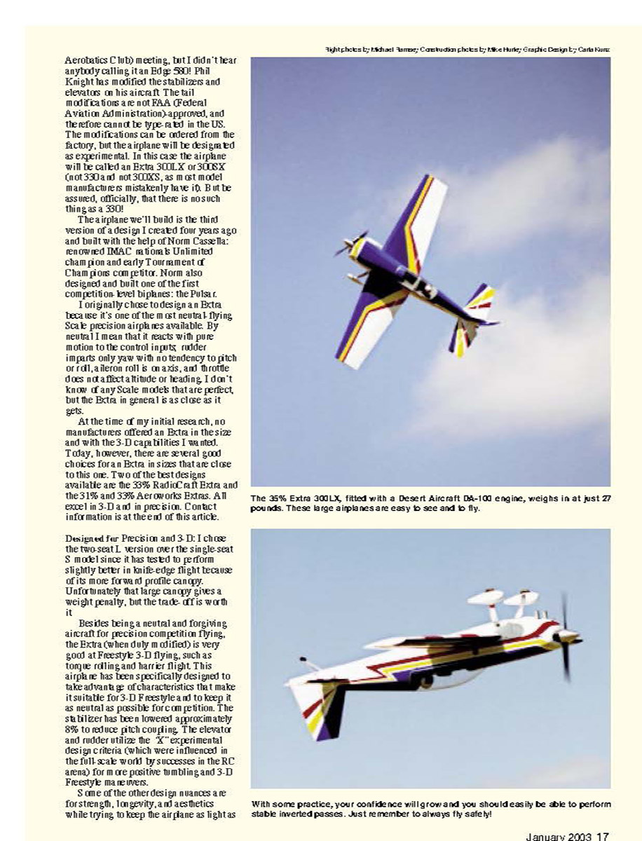 The completed Extra excels at aerobatic and 3-D Freestyle