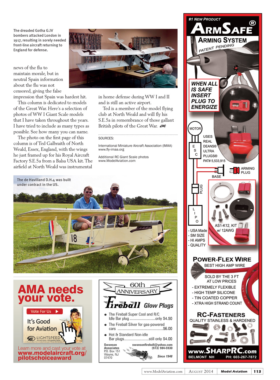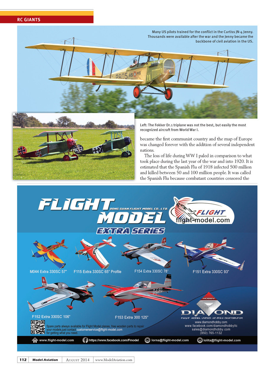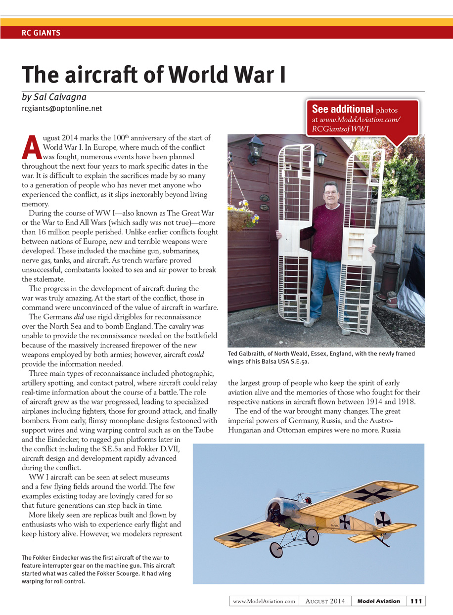 More likely seen are replicas built and flown by enthusiasts who wish to experience early flight and keep history alive. However, we modelers represent the largest group of people who keep the spirit of early aviation alive and the memories of those young men who fought for their respective nations in aircraft flown from 1914 to 1918.