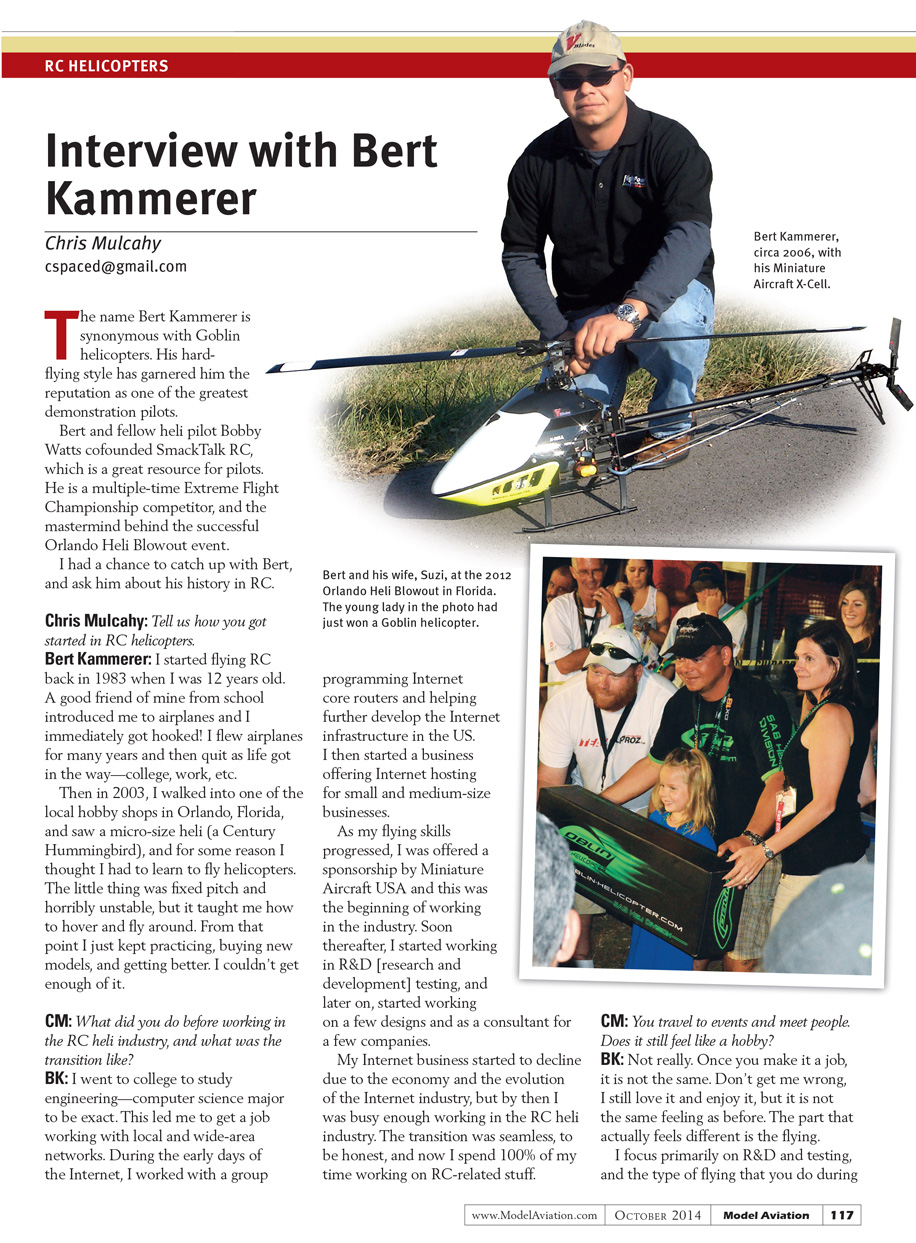 Bert Kammerer: I started flying RC back in 1983 when I was 12 years old. A good friend of mine from high school introduced me to airplanes and I immediately got hooked! I flew airplanes for many years and then quit as life got in the way—college, work, etc.
