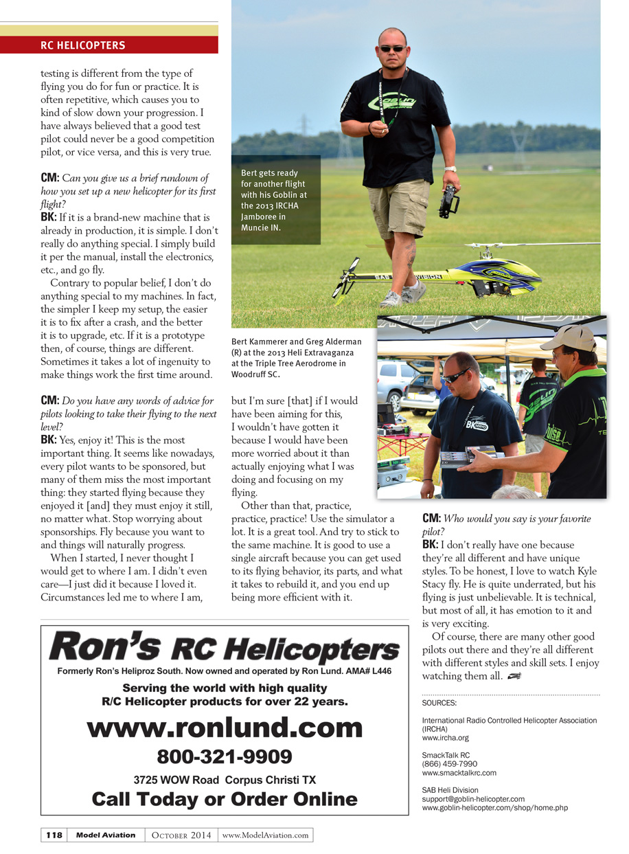 The name Bert Kammerer is synonymous with Goblin helicopters. His hard-flying style has garnered his reputation as one of the greatest demonstration pilots.