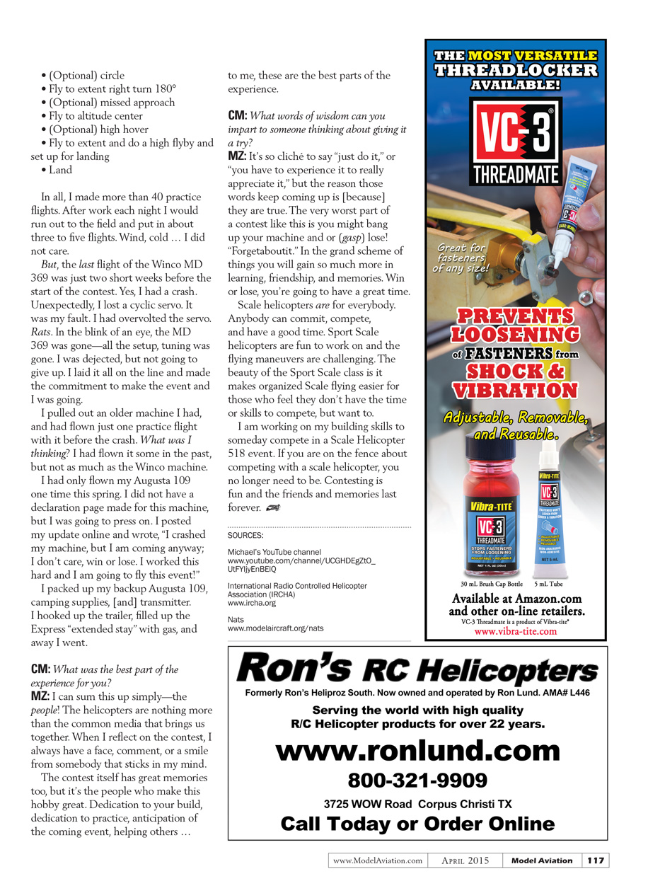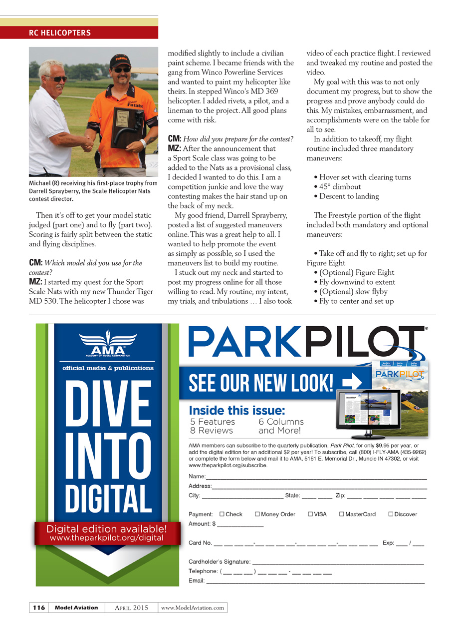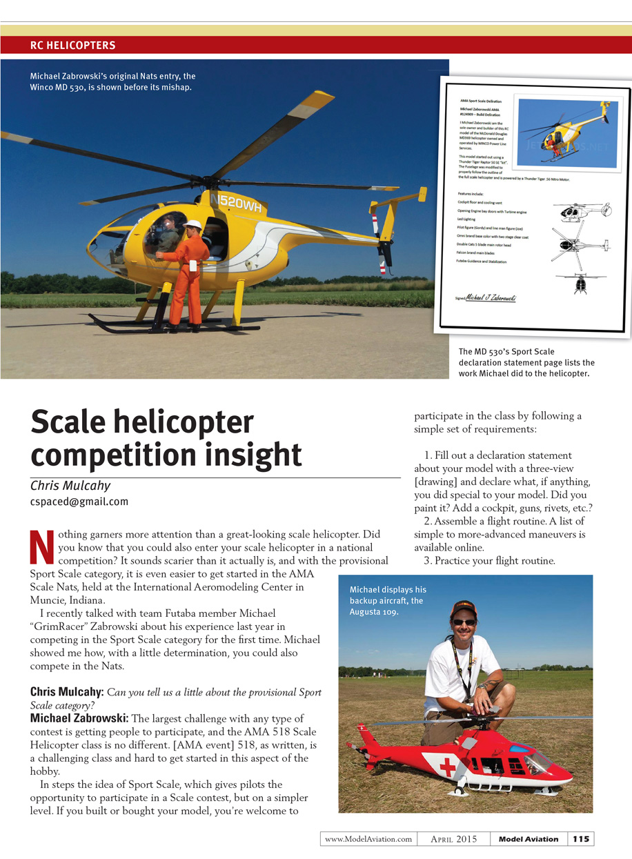 Michael Zabrowski: The largest challenge with any type of contest is getting people to participate, and the AMA 518 Scale Helicopter class is no different. [AMA event] 518, as written, is a challenging class and hard to get started in in this aspect of the hobby.