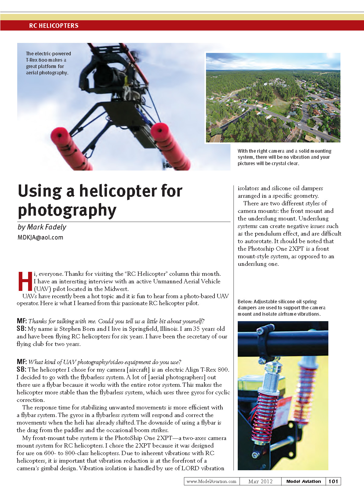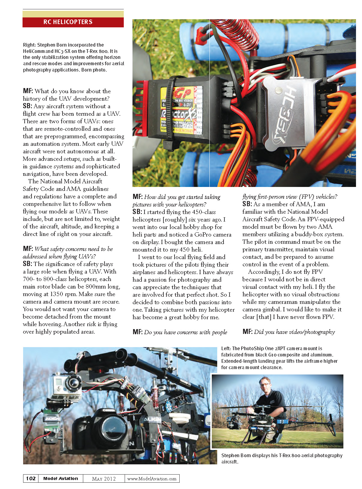 SB: The helicopter I chose for my camera [aircraft] is an electric Align T-Rex 800.
