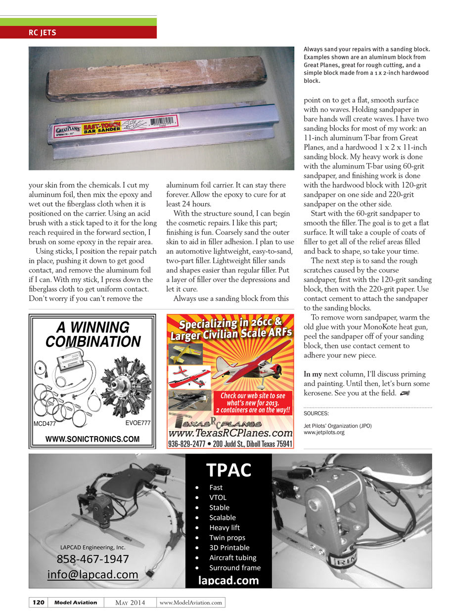 In my next column, I’ll discuss priming and painting. Until then, let’s burn some kerosene. See you at the field.