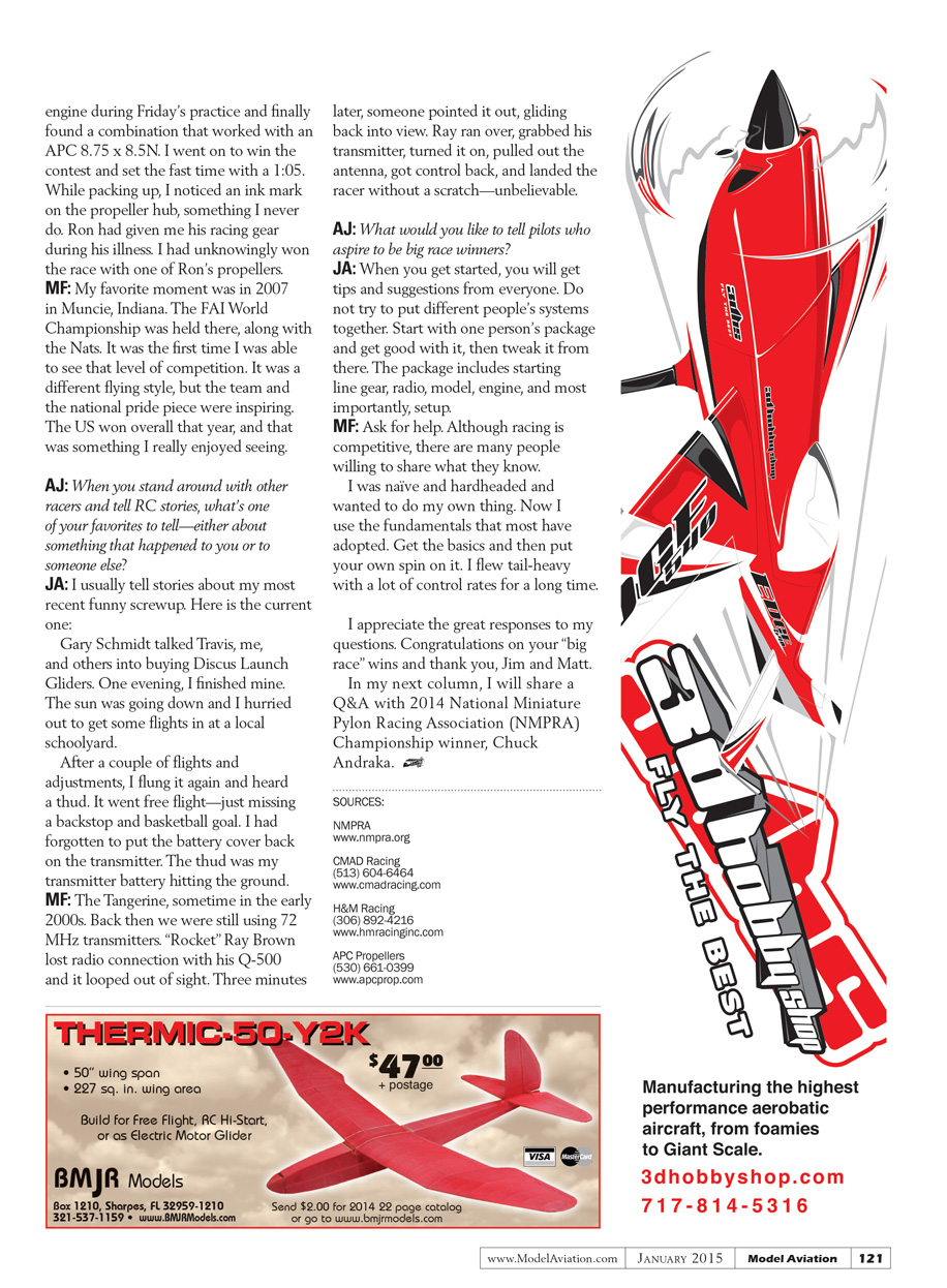 In my next column, I will share a Q&A with 2014 National Miniature Pylon Racing Association (NMPRA) Championship winner Chuck Andraka.[dingbat]