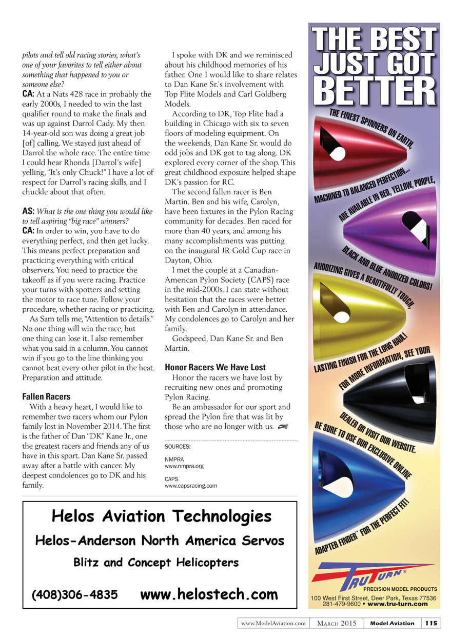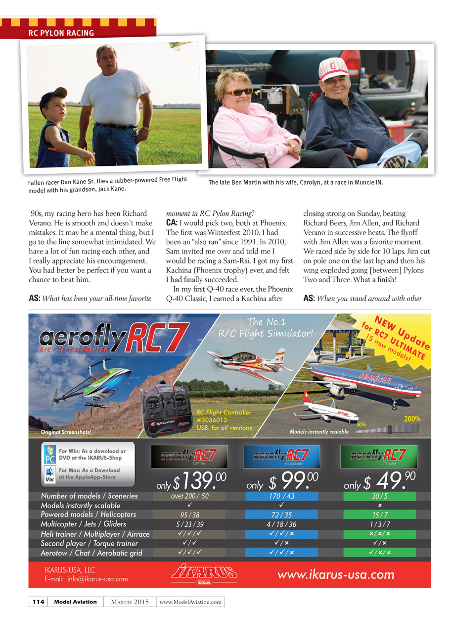 For this month’s column, I had a question-and-answer session with 2014 National Miniature Pylon Racing Association (NMPRA) Championship winner Chuck Andraka. He took top honors at the Q-40 race last fall in Shelton, Washington. His teammate and caller was Duane Hulen, from Lee’s Summit, Missouri. I hope Chuck’s insight will benefit you in your quest for a “big race” win.