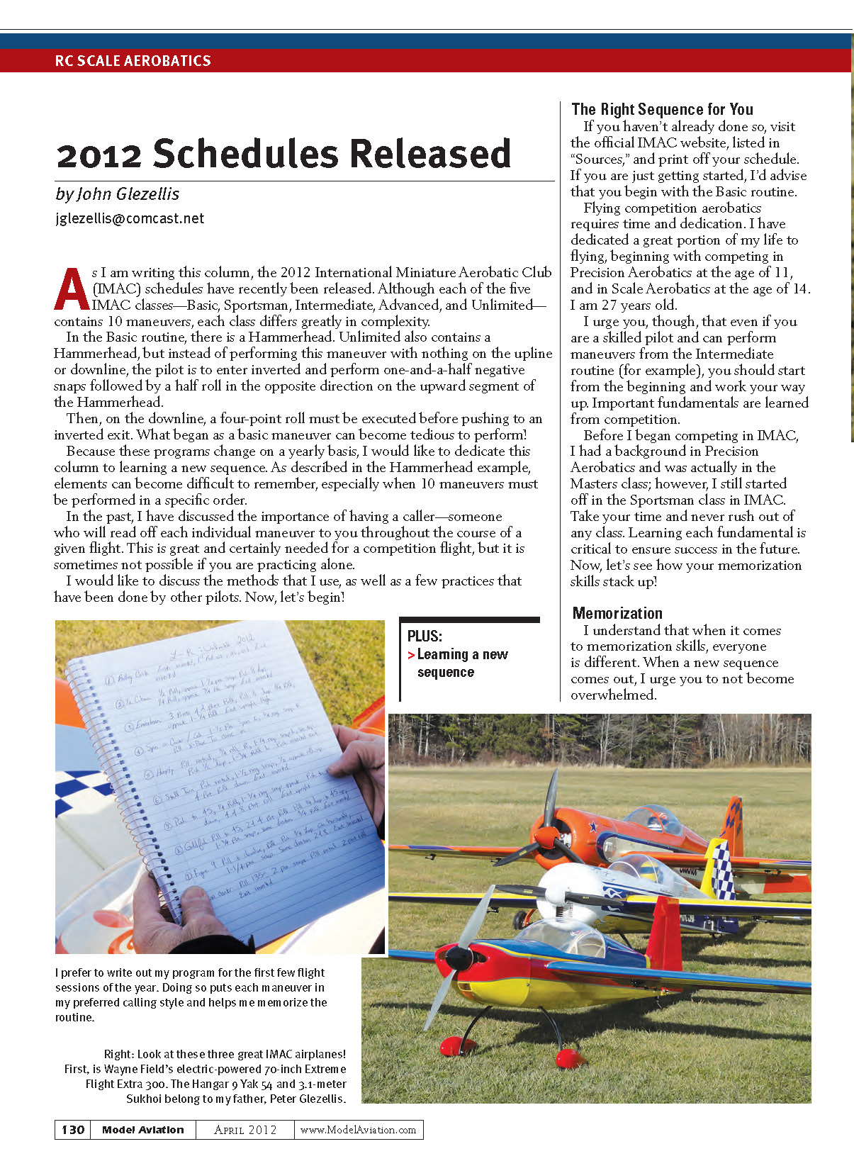 A s I am writing this column, the 2012 International Miniature Aerobatic Club