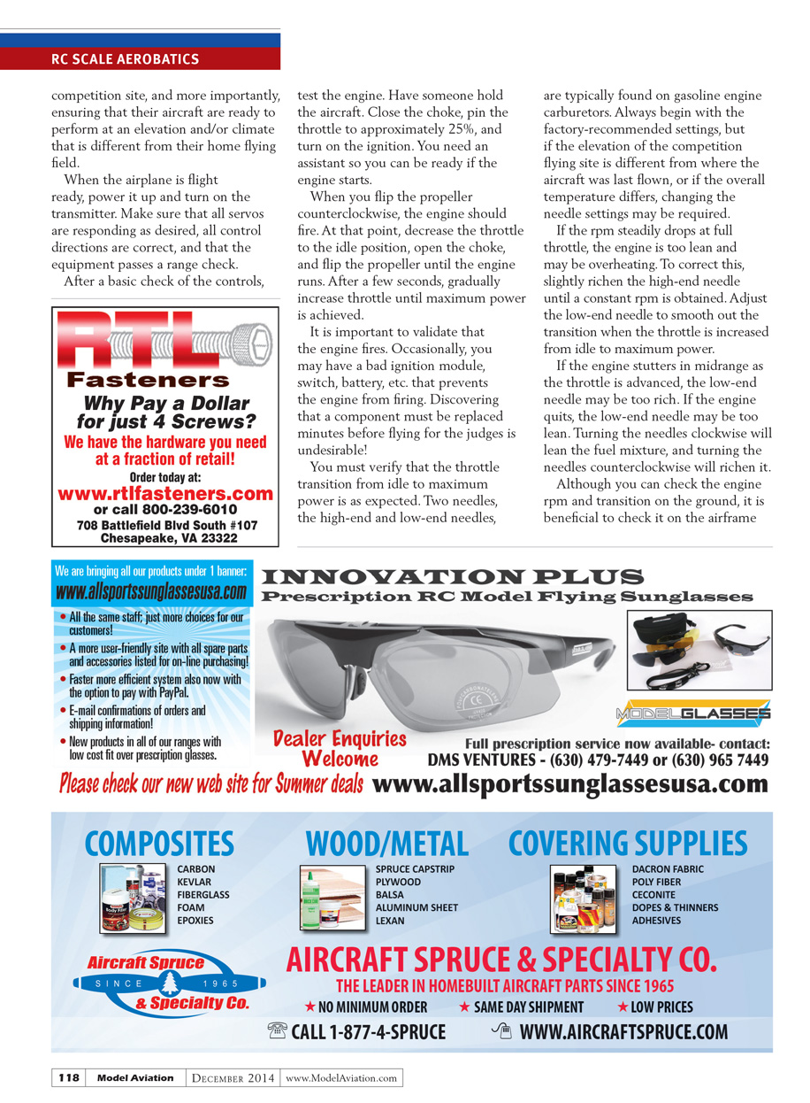 In Scale Aerobatics, there are two types of pilots. A sport aerobatic pilot is content with performing a loop, roll, and a few extreme maneuvers such as the hover and torque roll. A competition pilot, however, is interested in executing each figure of a given sequence with excellence.