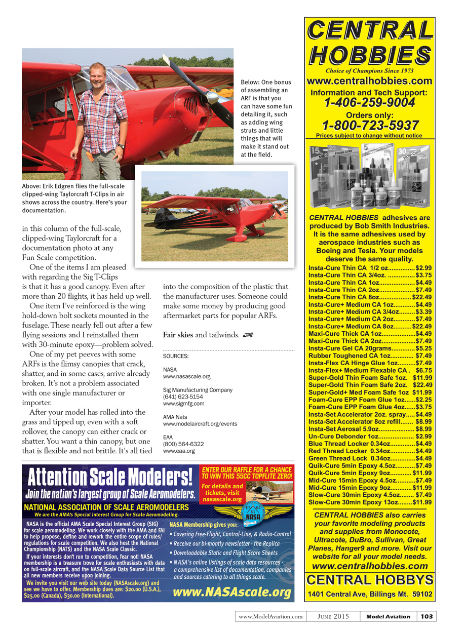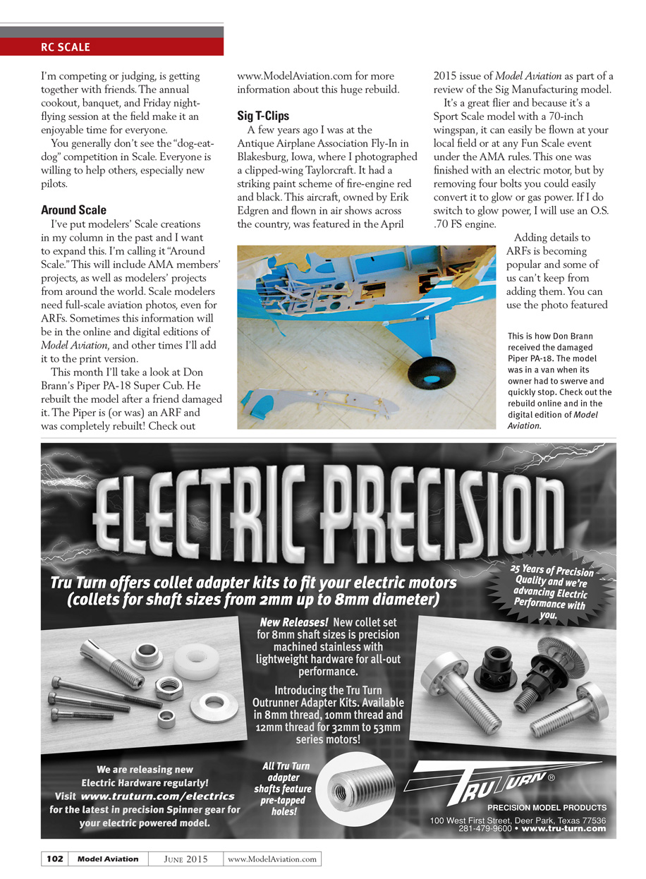 Around Scale I’ve put modelers’ Scale creations in my column in the past and I want to expand this. I’m calling it “Around Scale.” This will include AMA members’ projects, as well as modelers’ projects from around the world. Scale modelers need full-scale aviation photos, even for ARFs. Sometimes this information will be in the online and digital editions of Model Aviation, and other times I’ll add it to the print version.