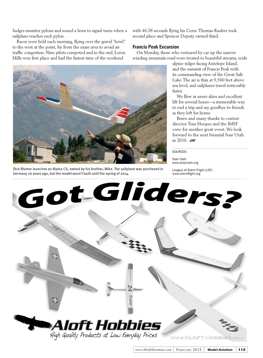 Bravo and many thanks to contest director Tom Hoopes and the IMSF crew for another great event. We look forward to the next biennial Soar Utah in 2016.[dingbat]