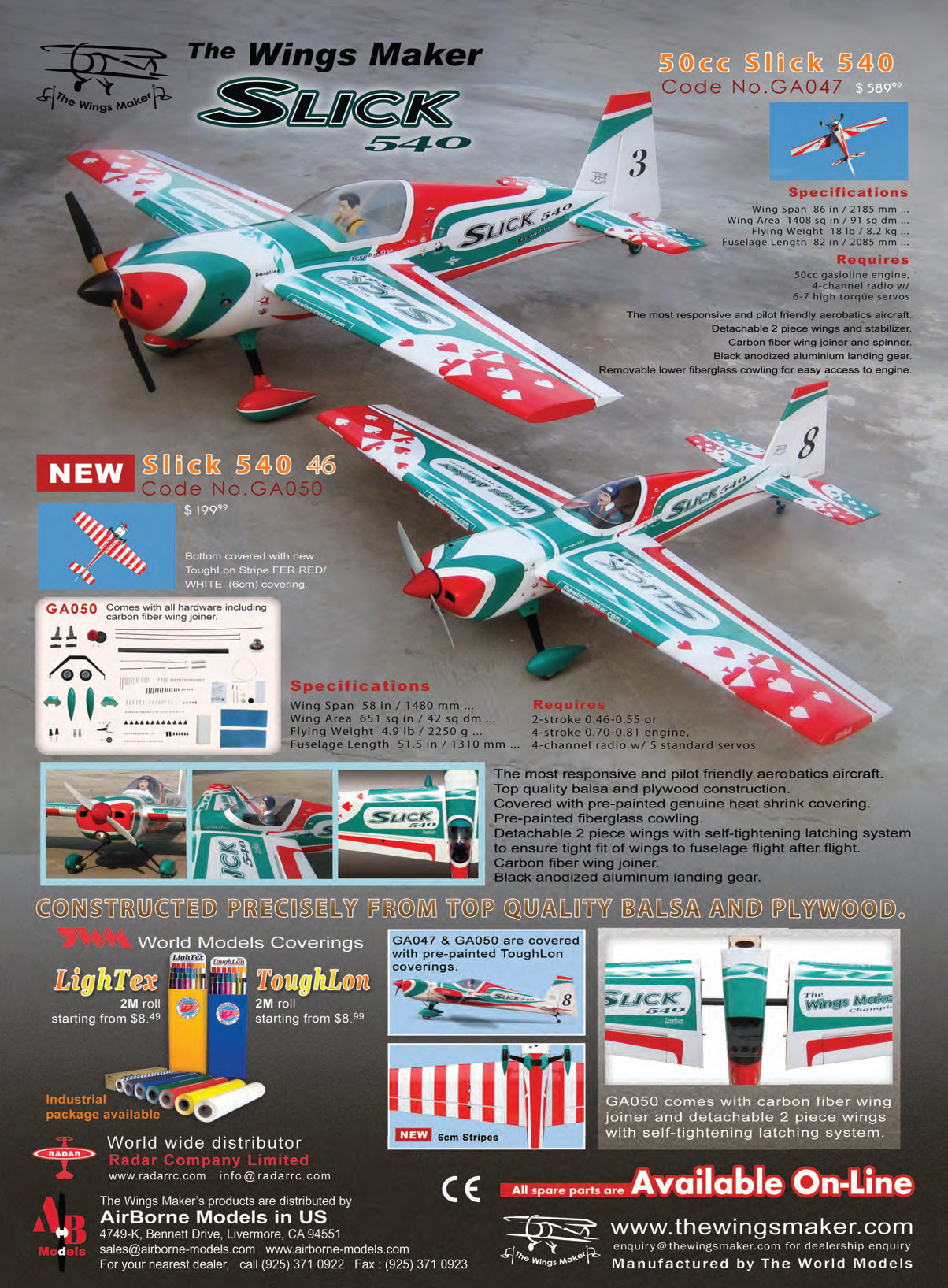 Radio Required: 4 Channel, Micro Receiver, 4 Micro Servos