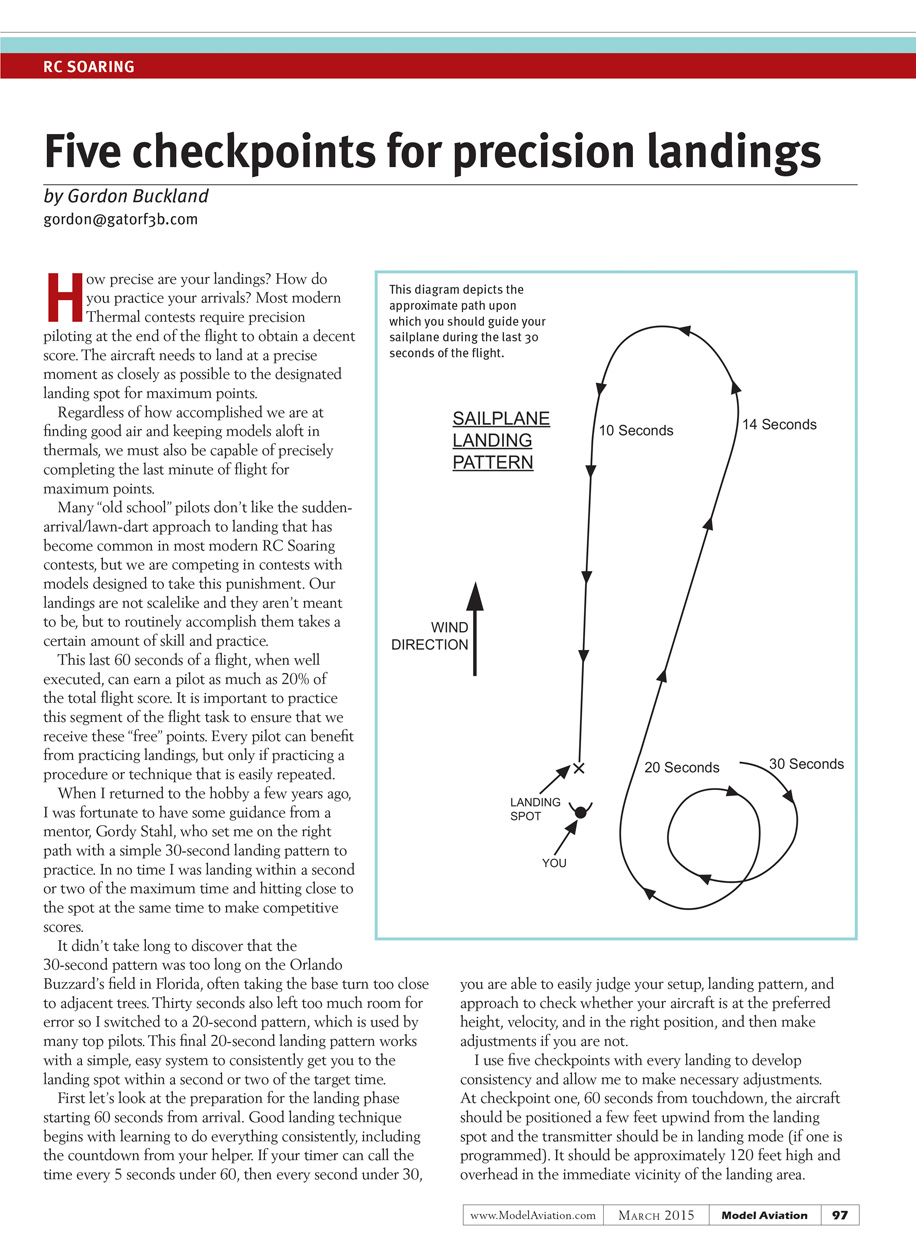 Regardless of how accomplished we are at finding good air and keeping models aloft in thermals, we must also be capable of precisely completing the last minute of flight for maximum points.