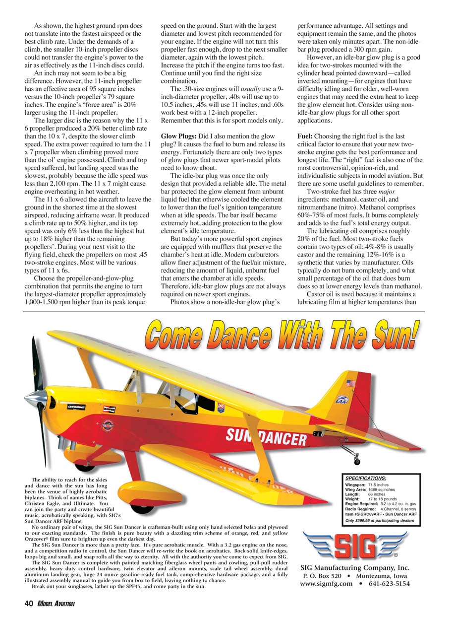 The 2.5-inch spinner reduces propeller drag while streamlining the model’s