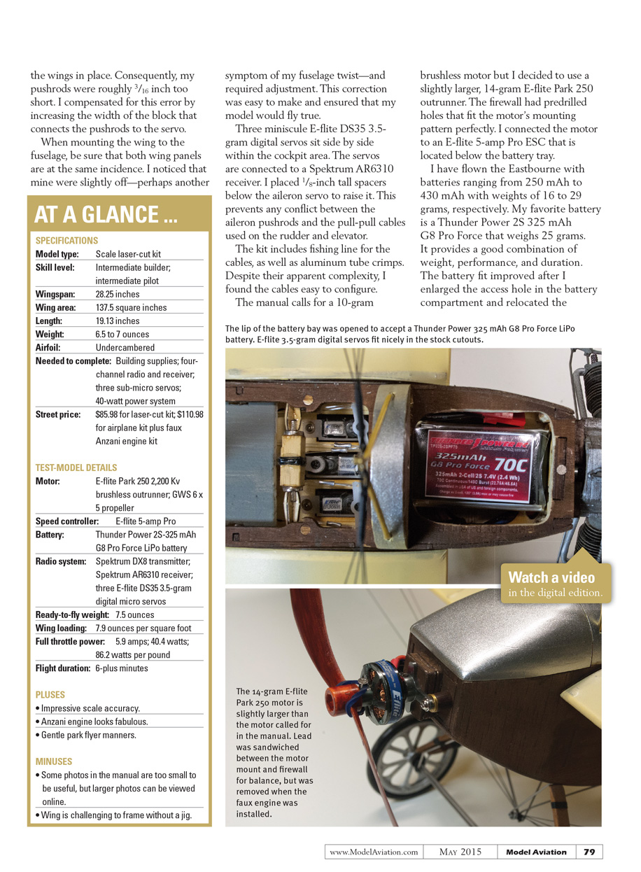 Street price: $85.98 for laser-cut kit; $110.98 for airplane kit plus faux Anzani engine kit