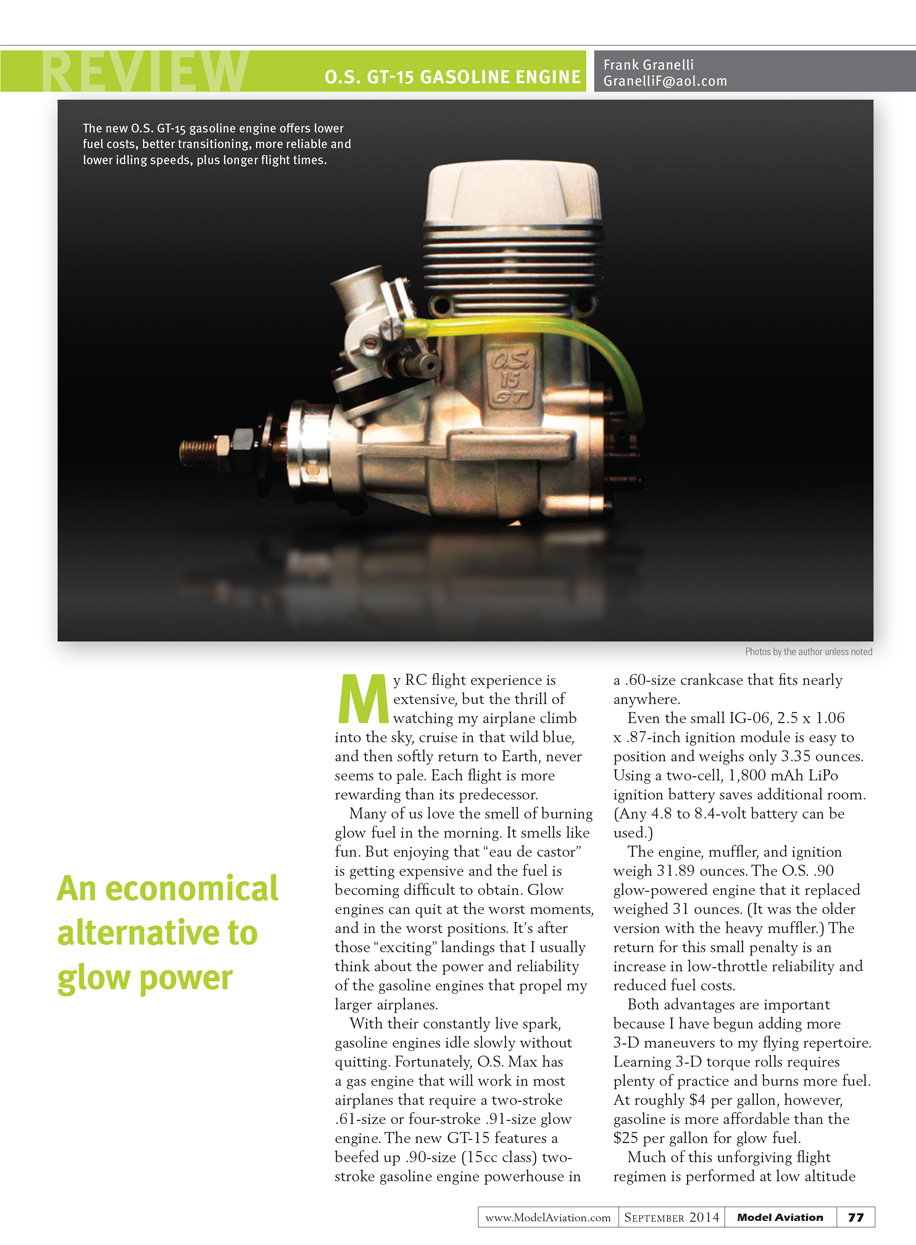 [Headline: O.S. GT15 Gasoline Engine]